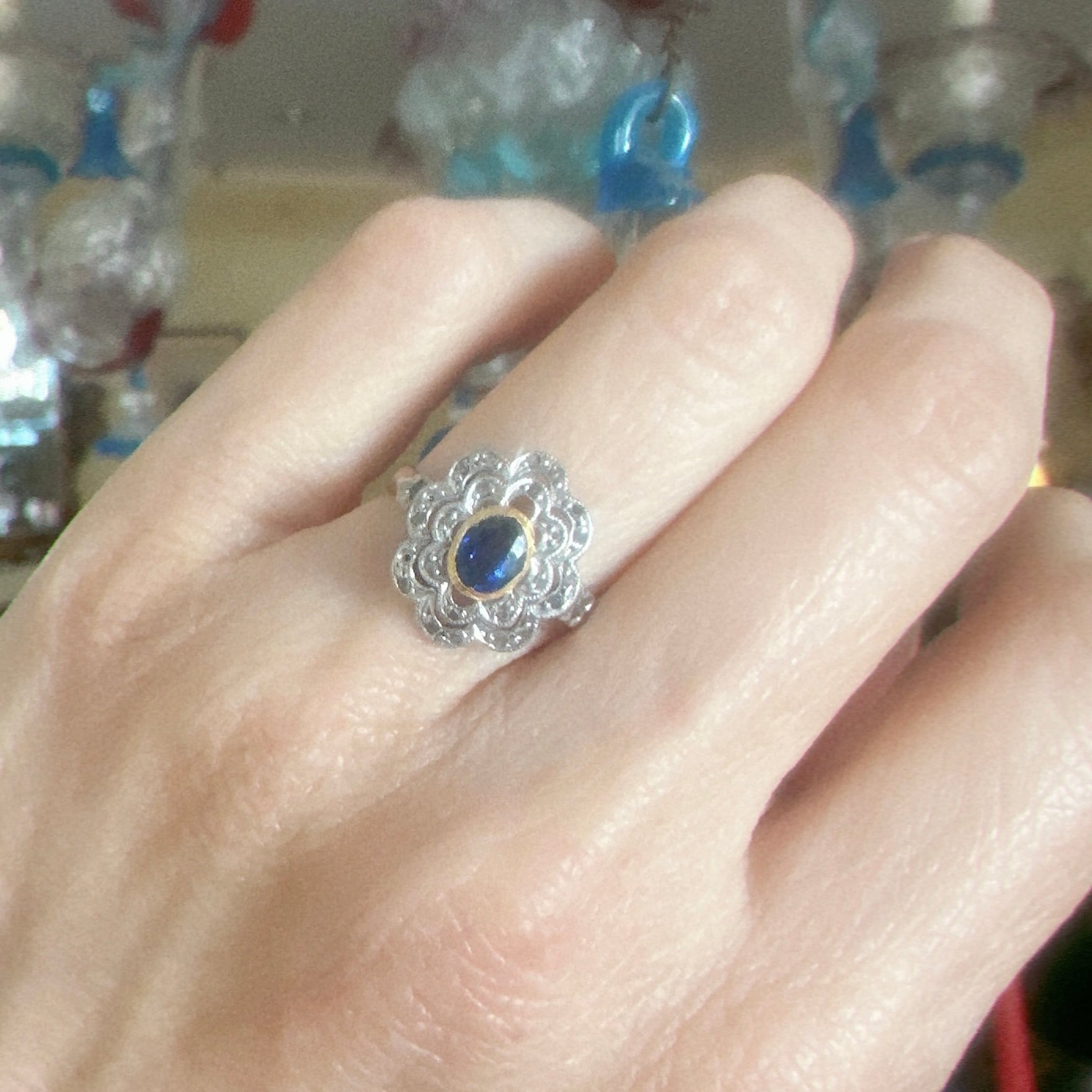 サファイア&ダイヤモンドフレンチクラスターリング