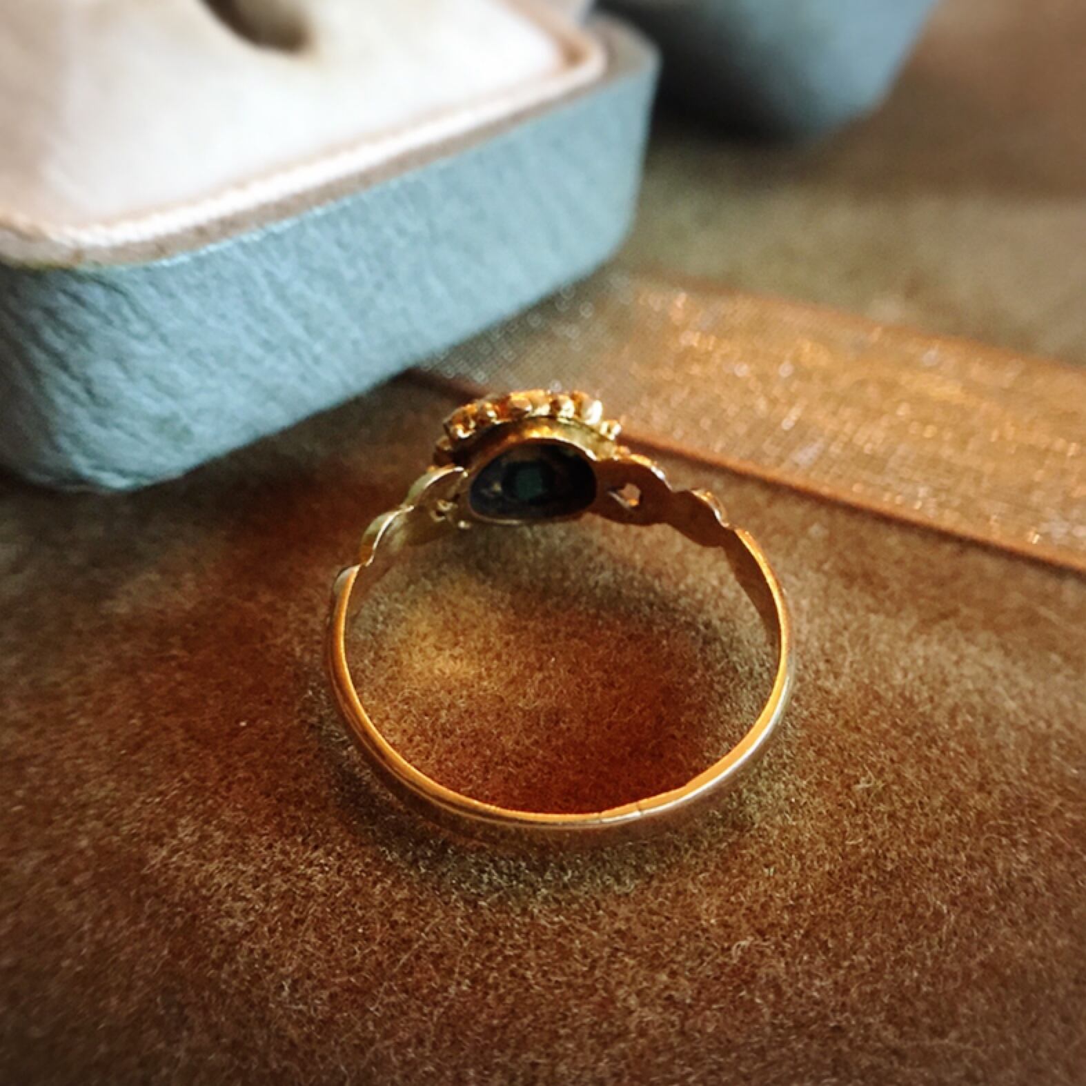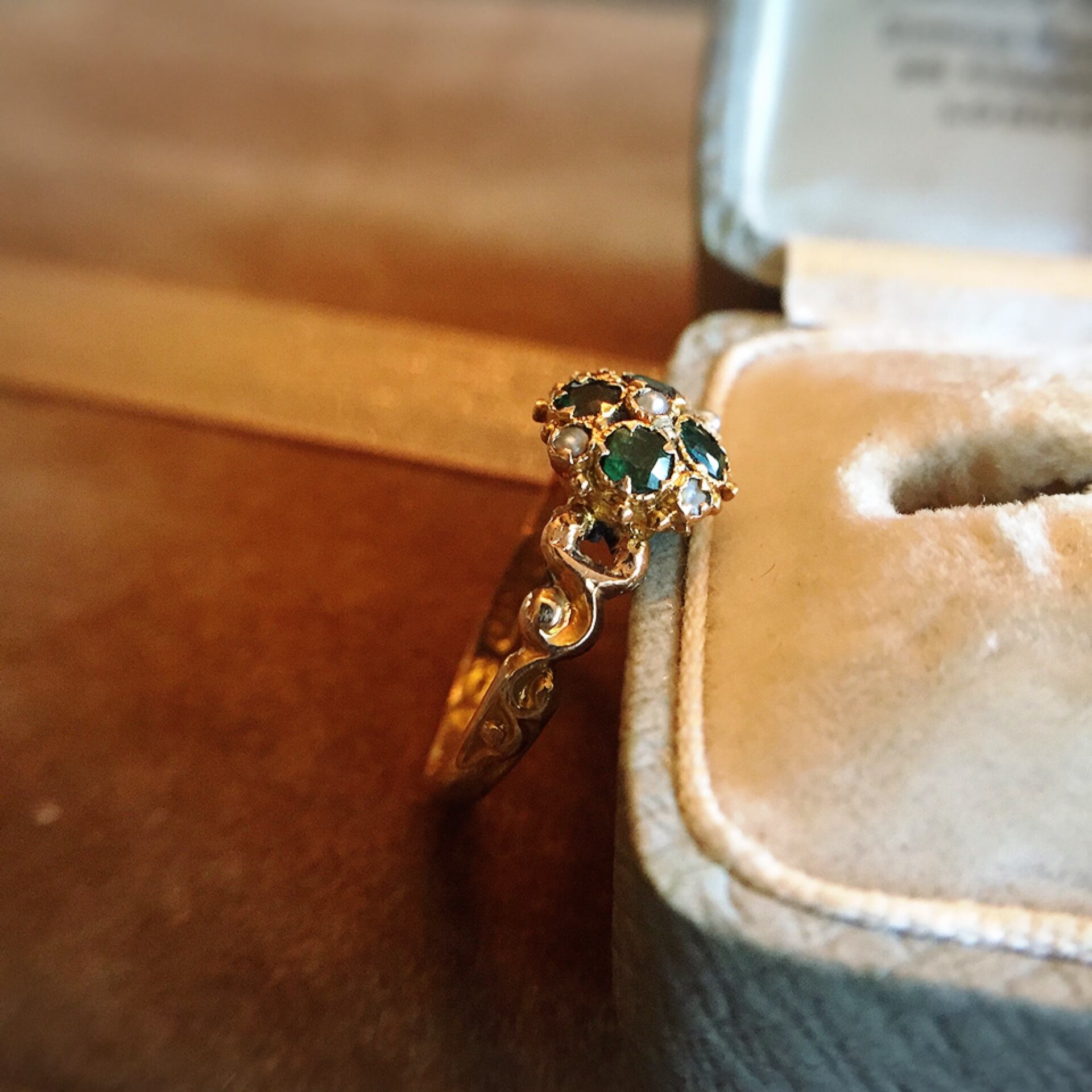 に並べられ、その間の小さなシードパールがよいアクセントとなっている19世紀後半のリングです。