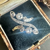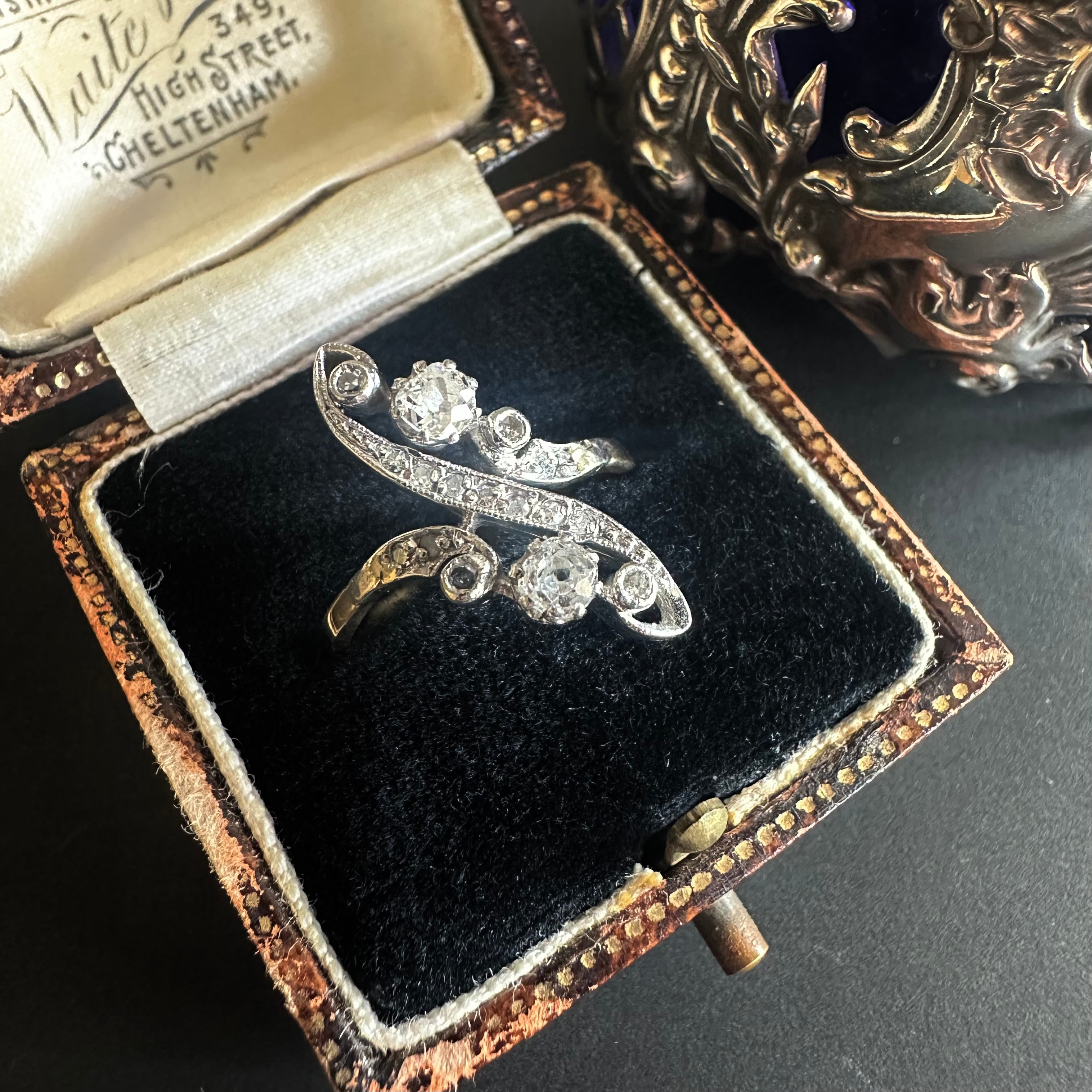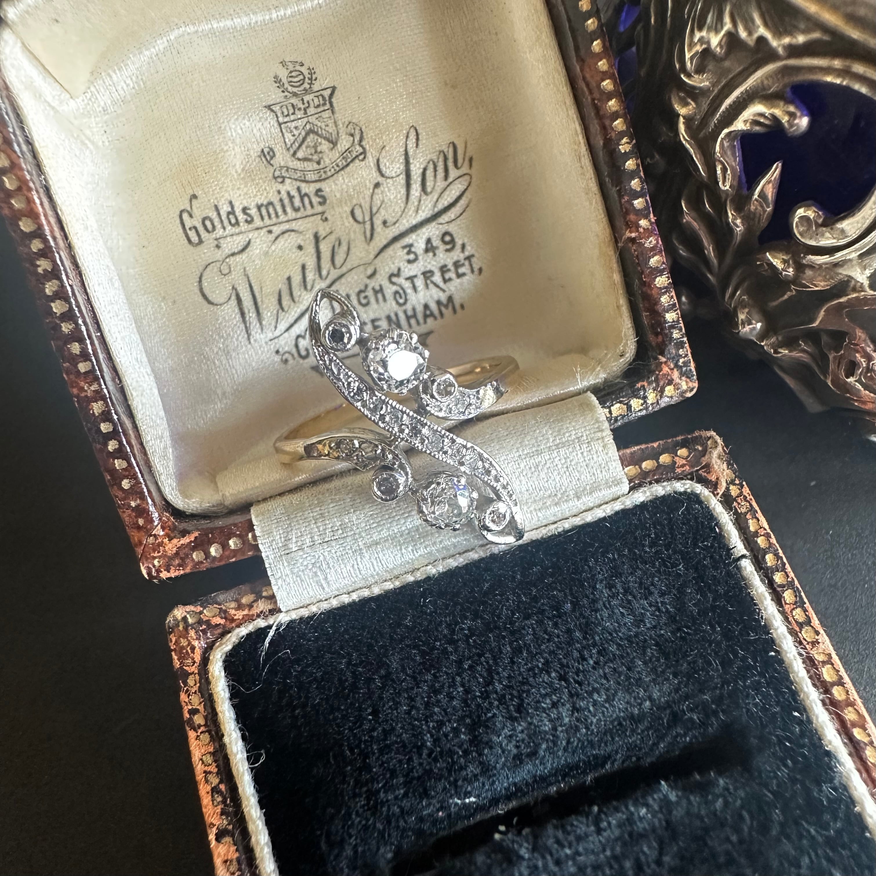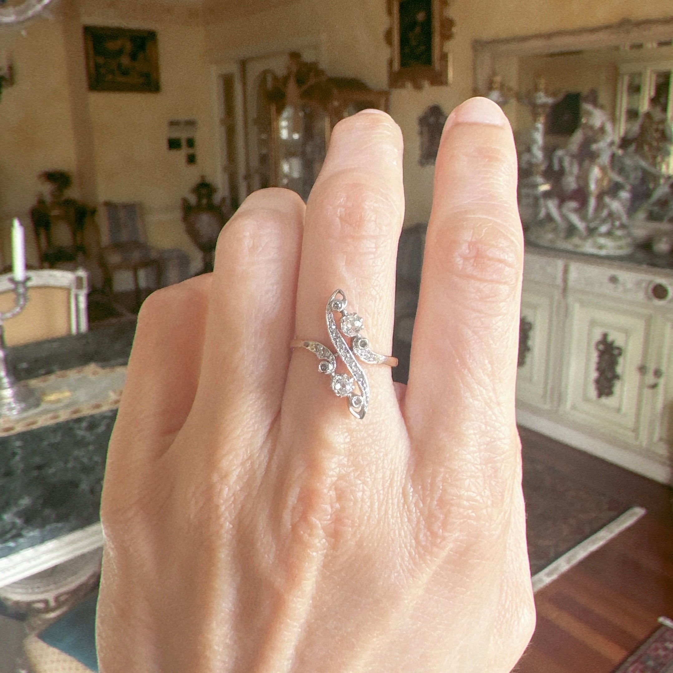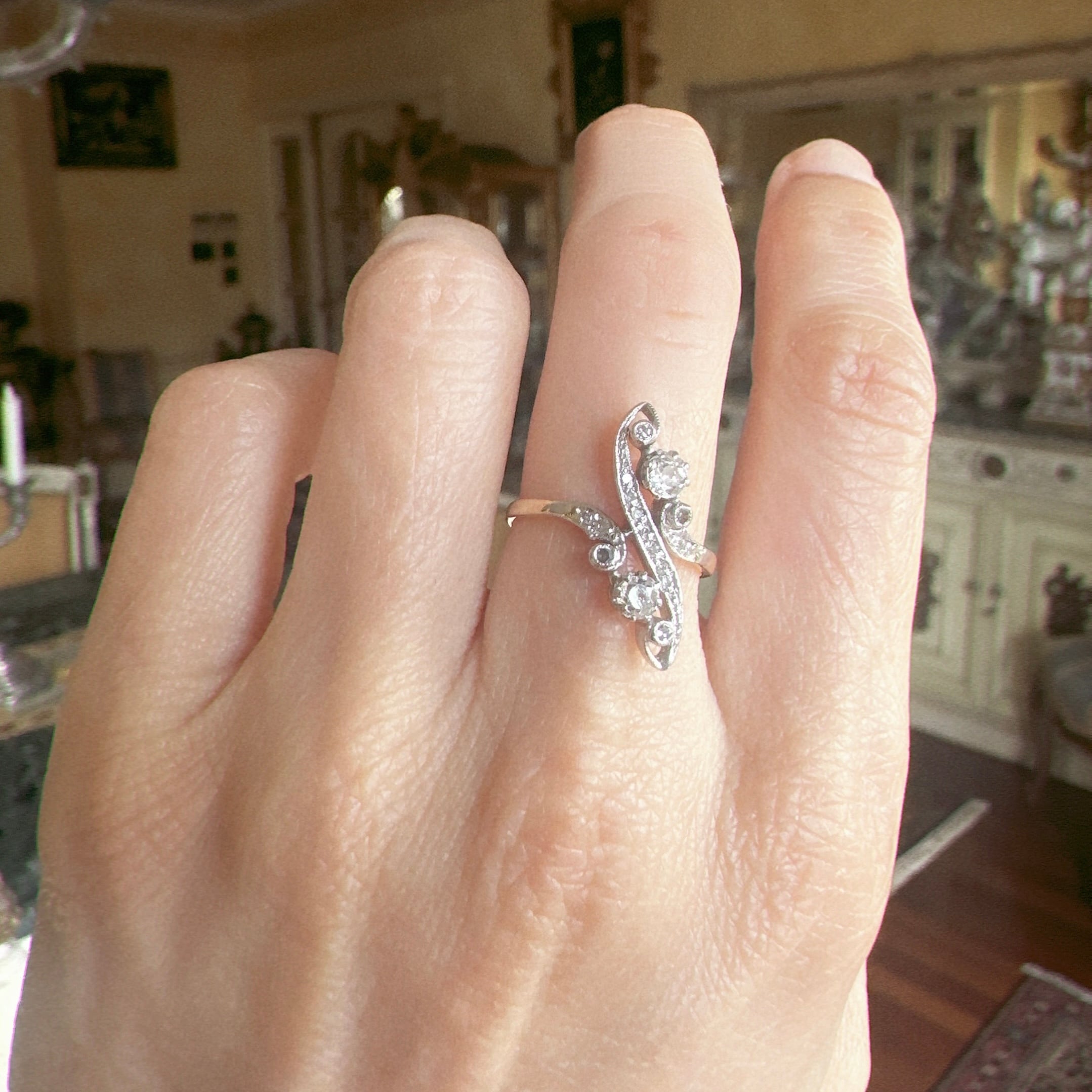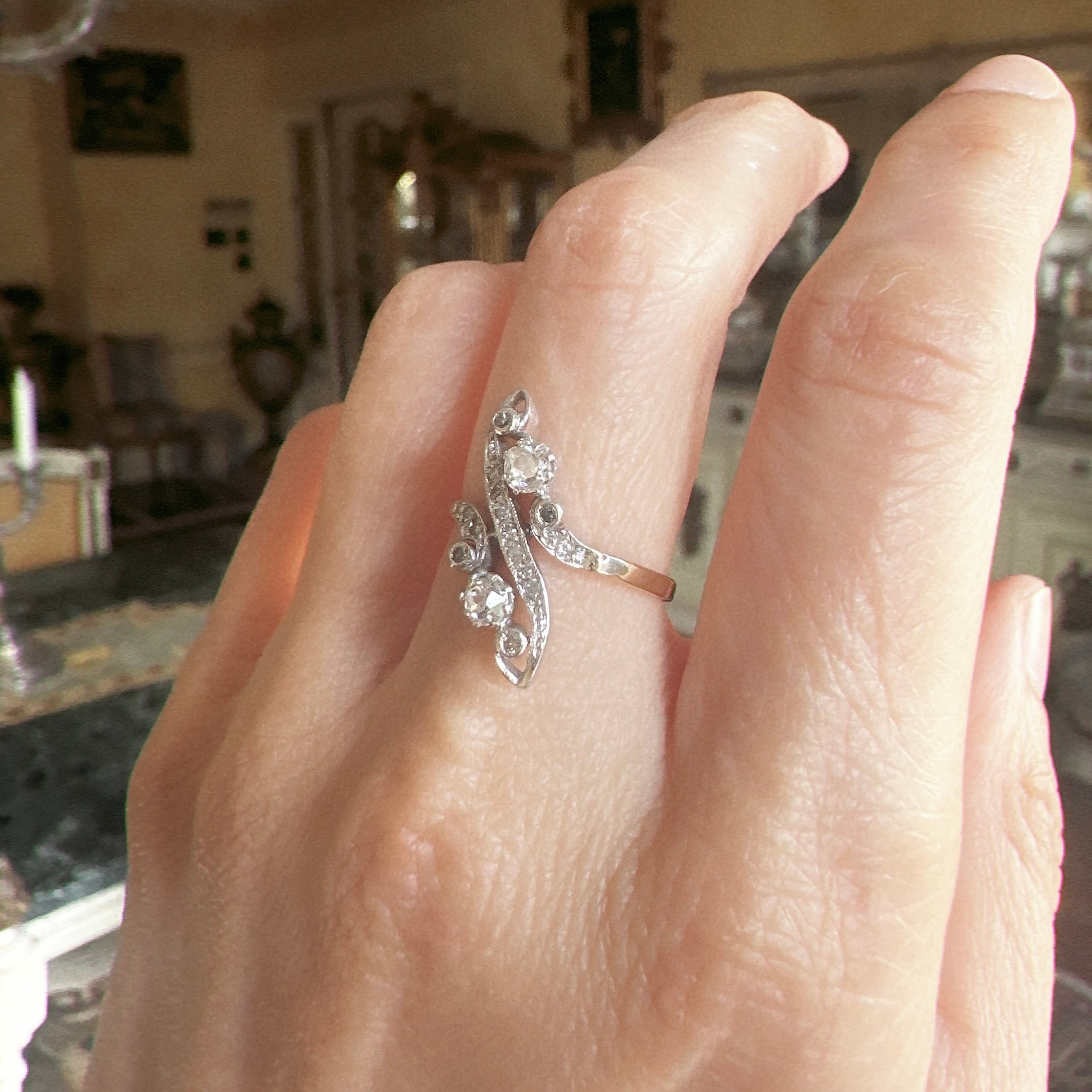 鈴蘭のようなオールドカットダイヤモンドのアールヌーヴォーリング