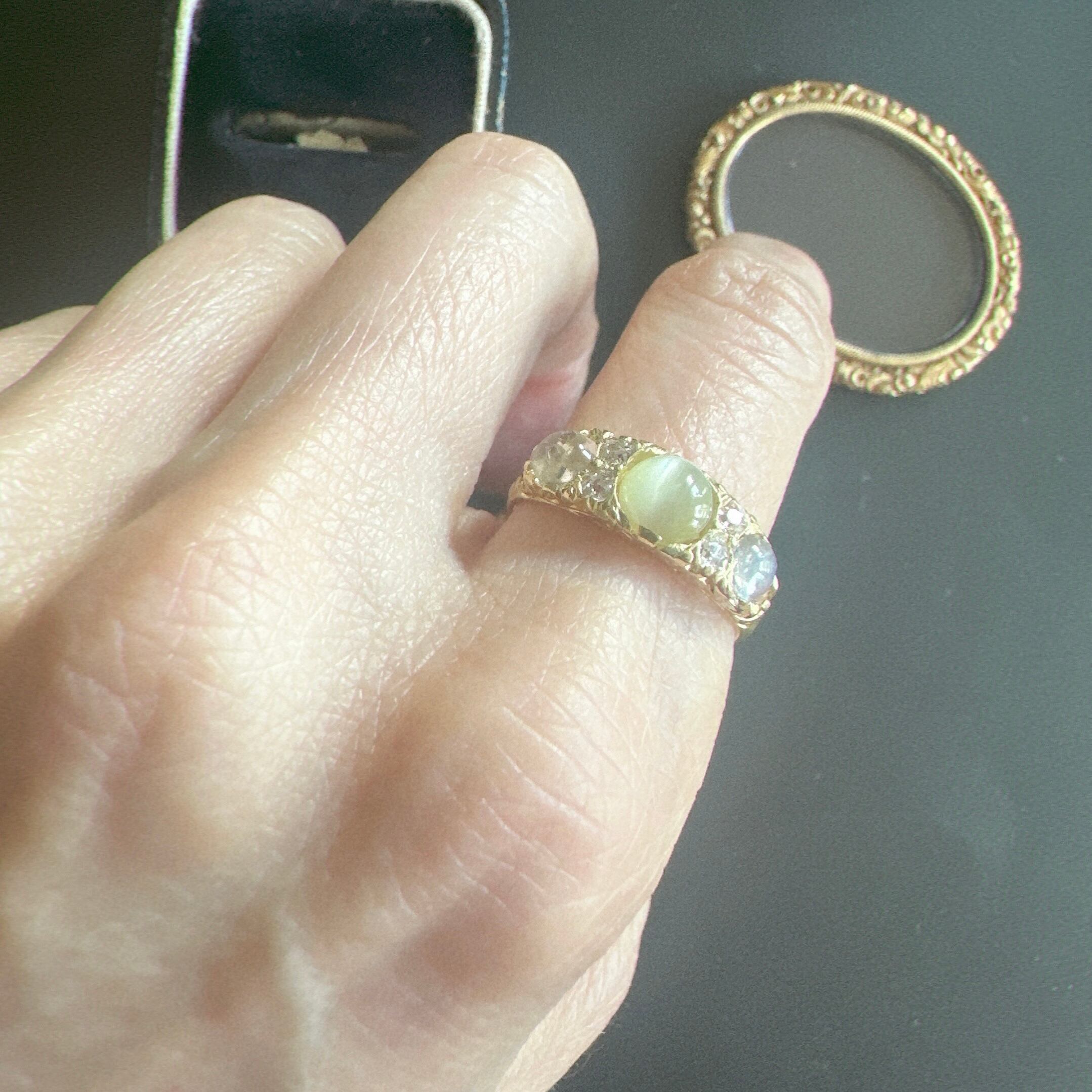 中央には、神秘的な光を宿すクリソベリルキャッツアイ。