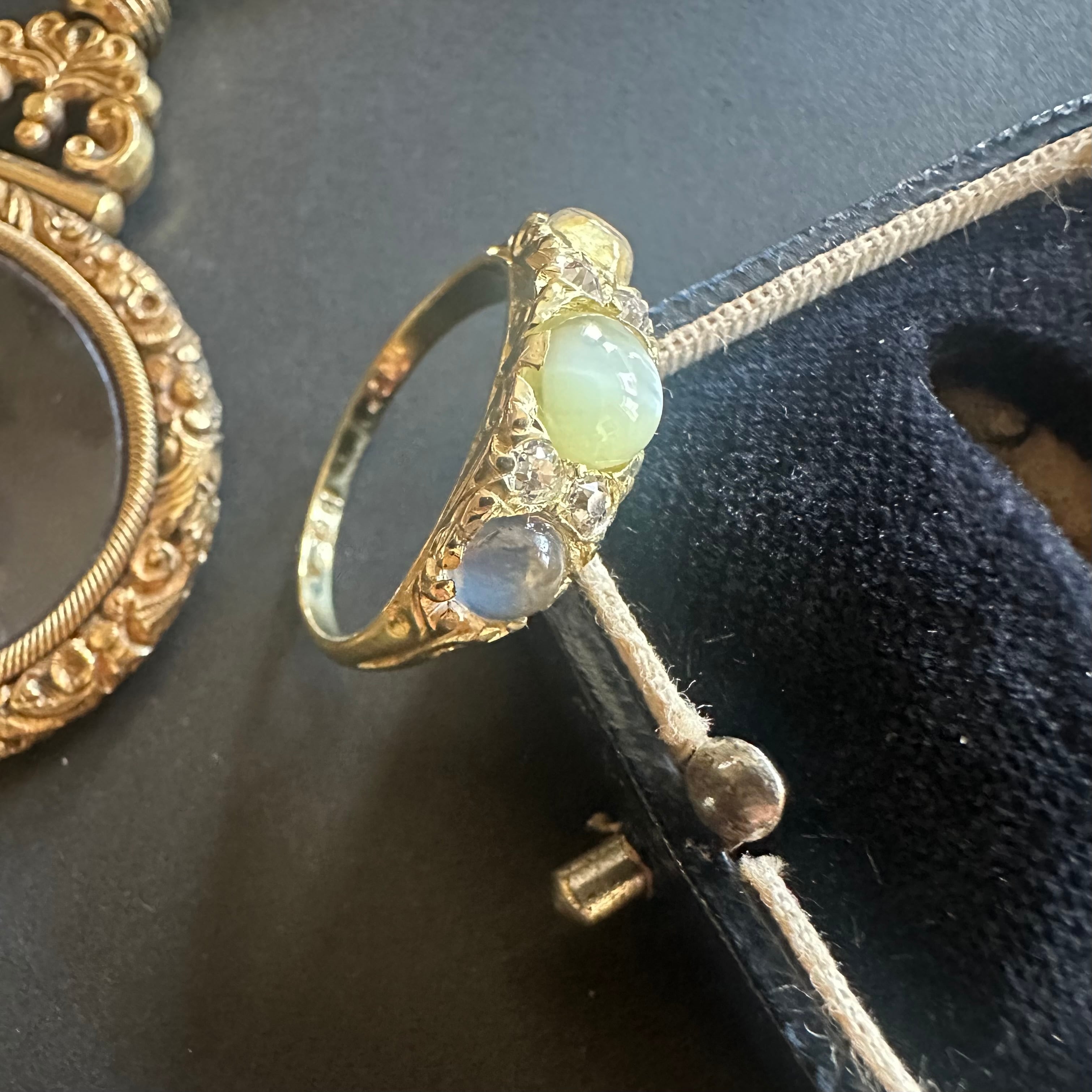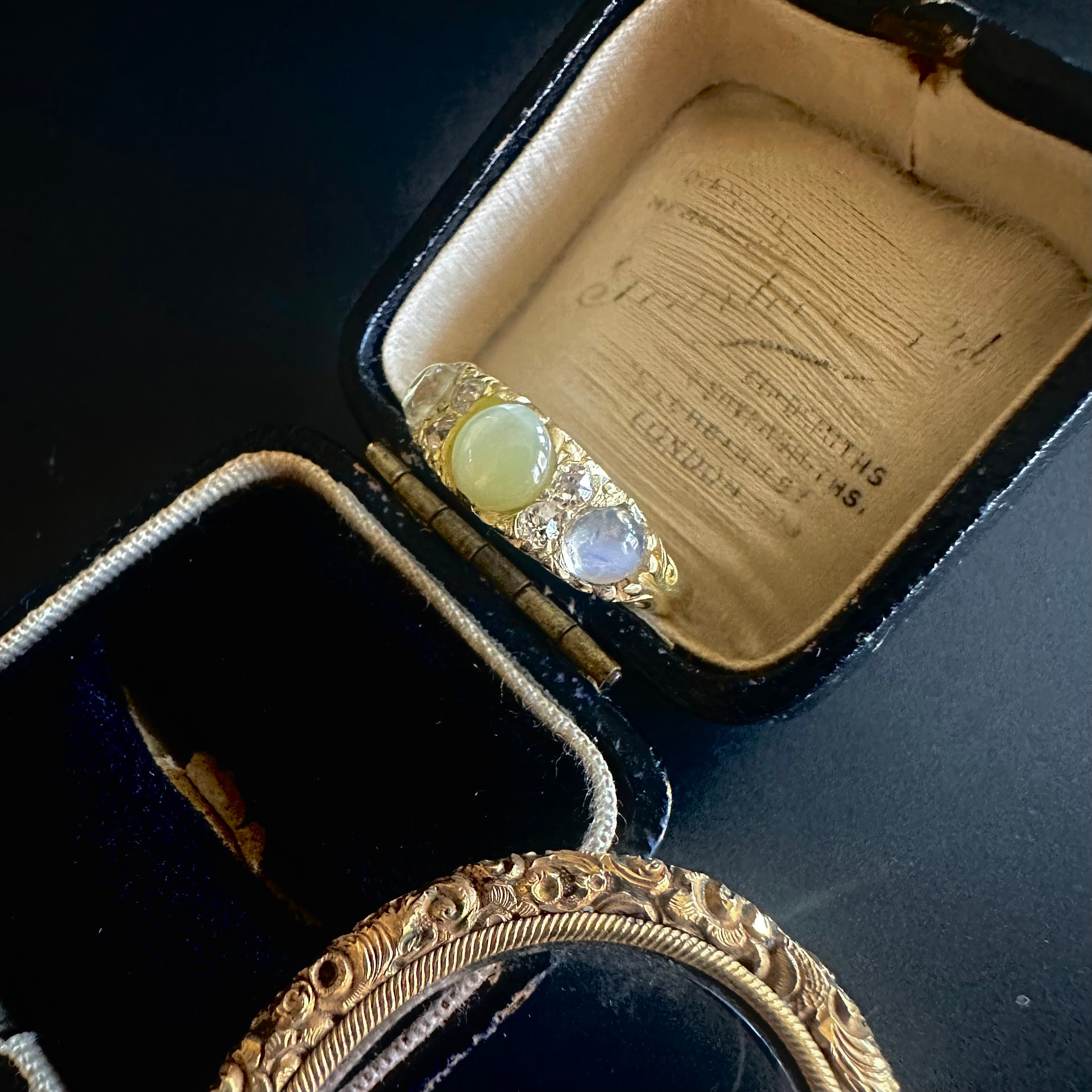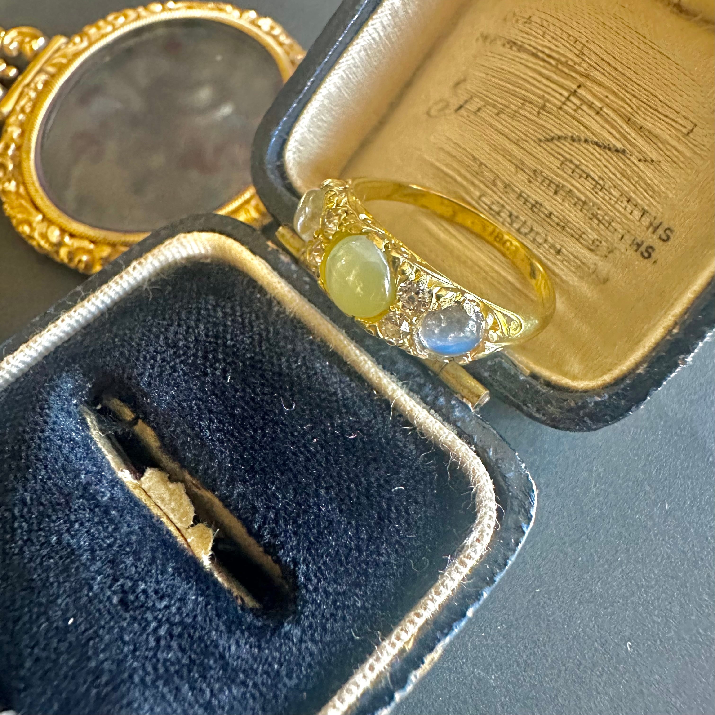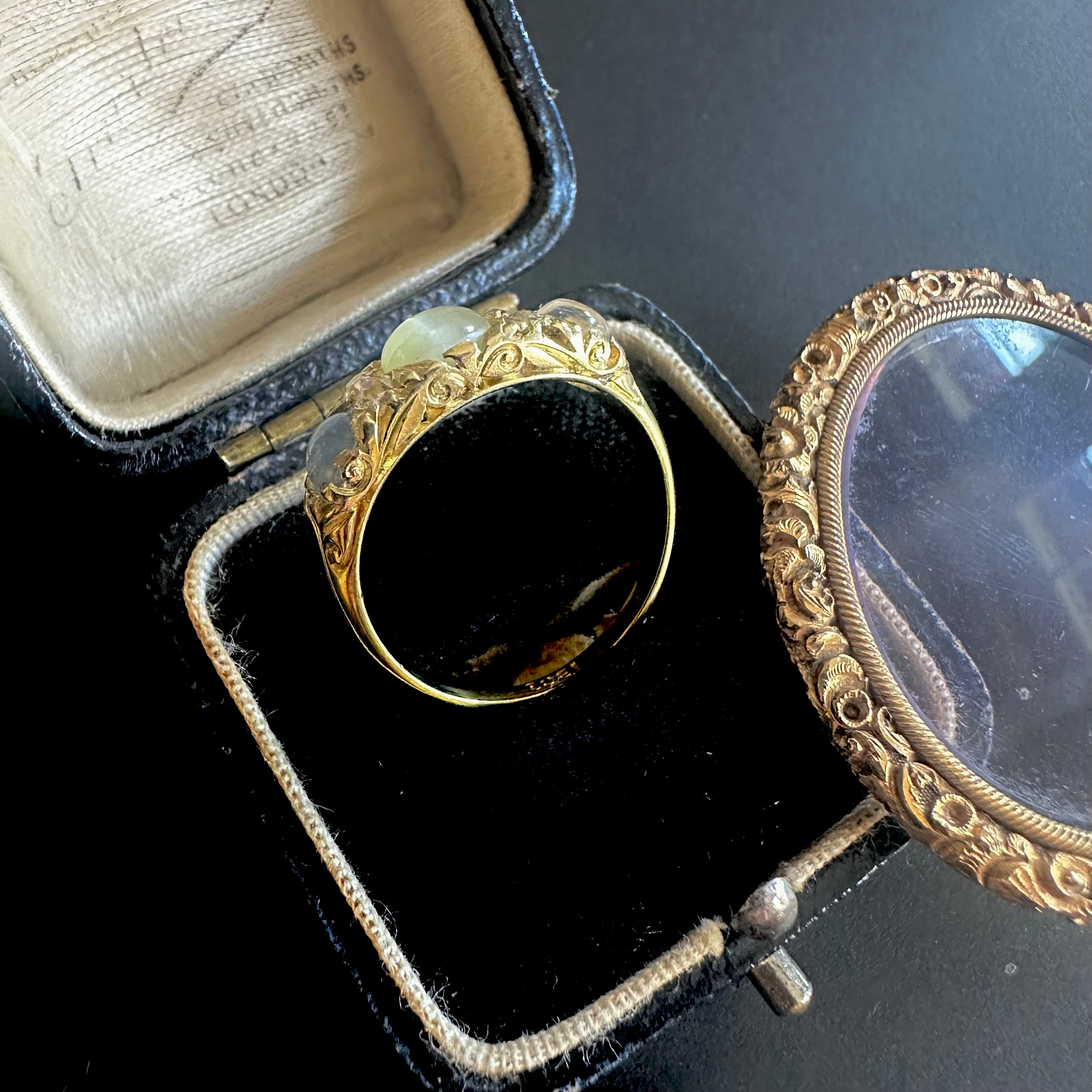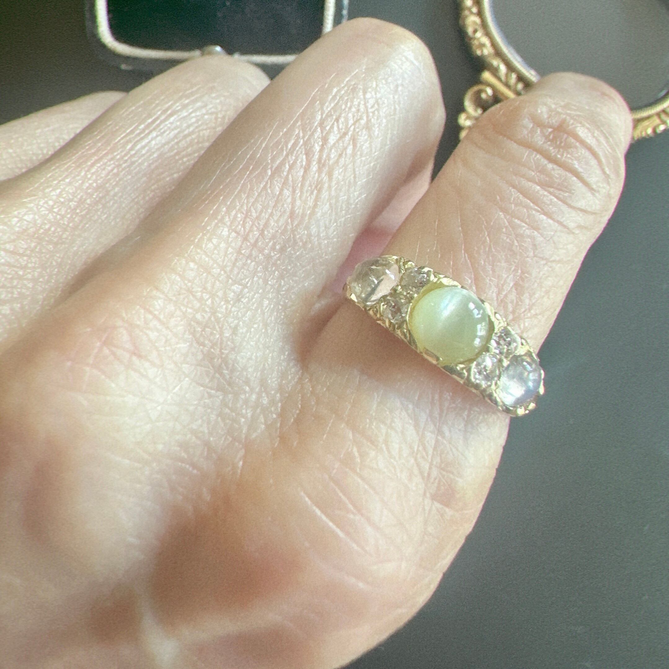 クリソベリルキャッツアイ&ムーンストーン スリーストーンリング