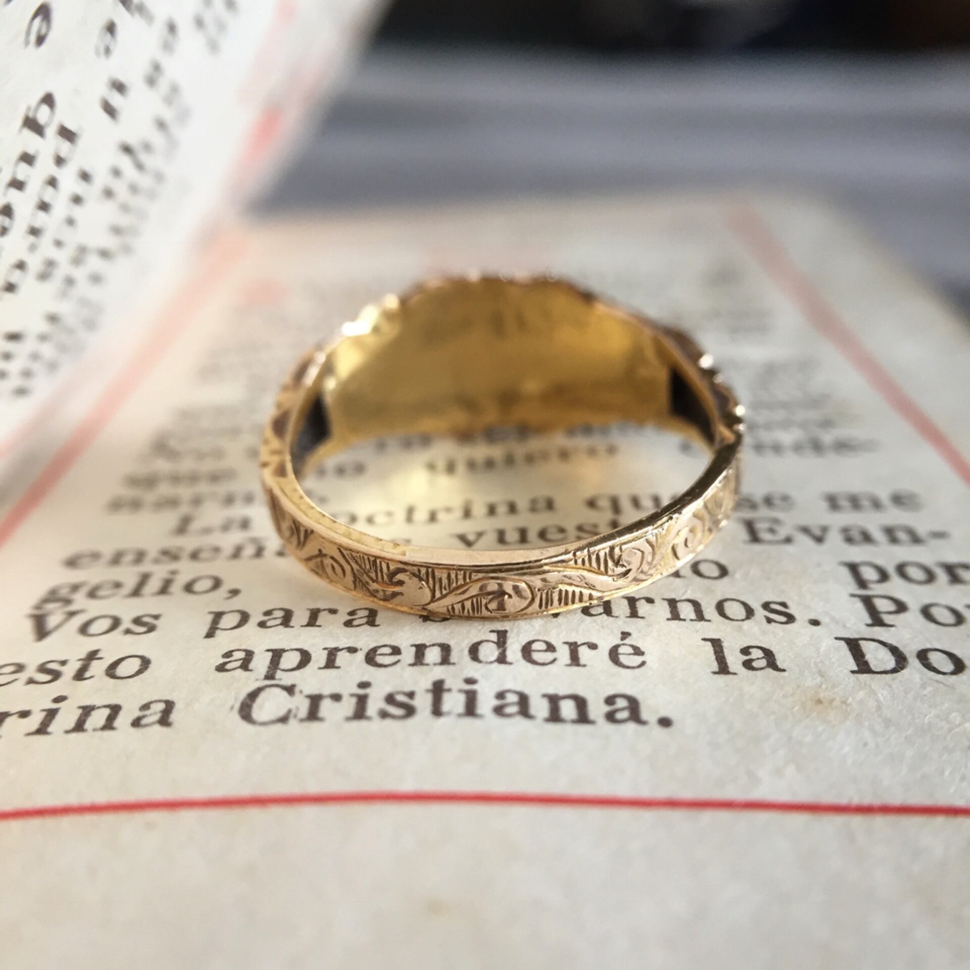 横からベゼルを覗くと、立体的な唐草模様の形をし、シャンクから流れてくる唐草模様と一体感をなし、手作りなからではの深い味わいを感じずにはいれません。