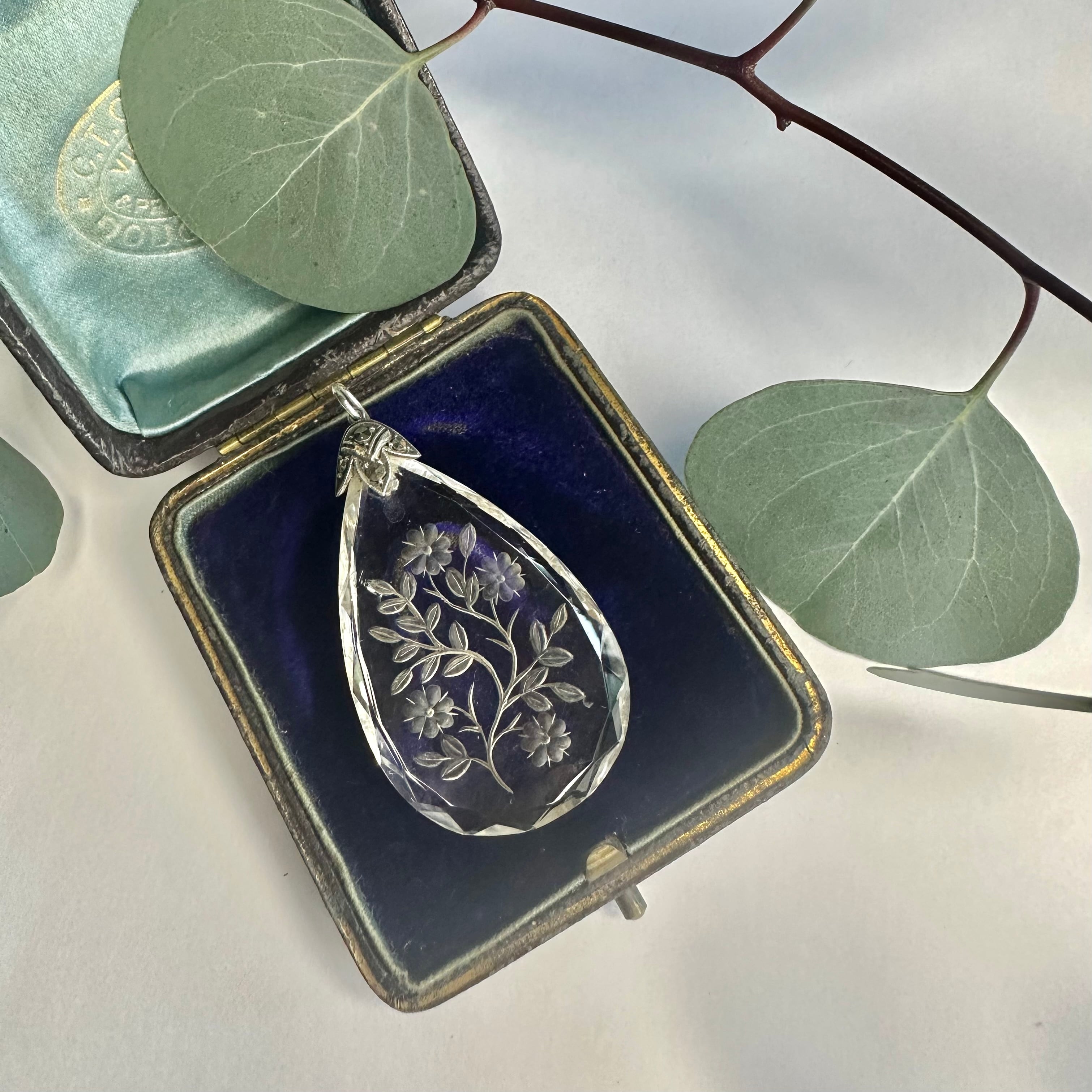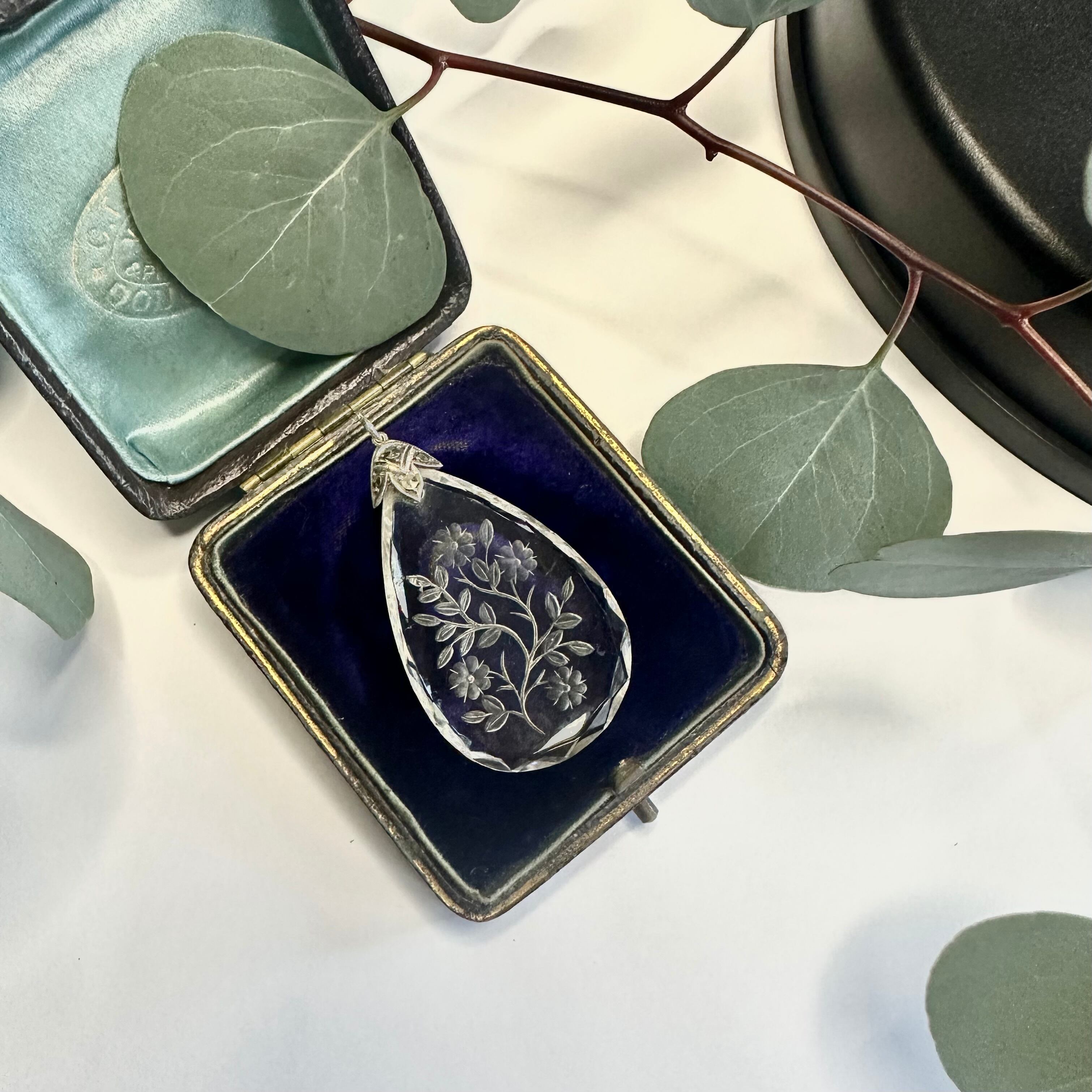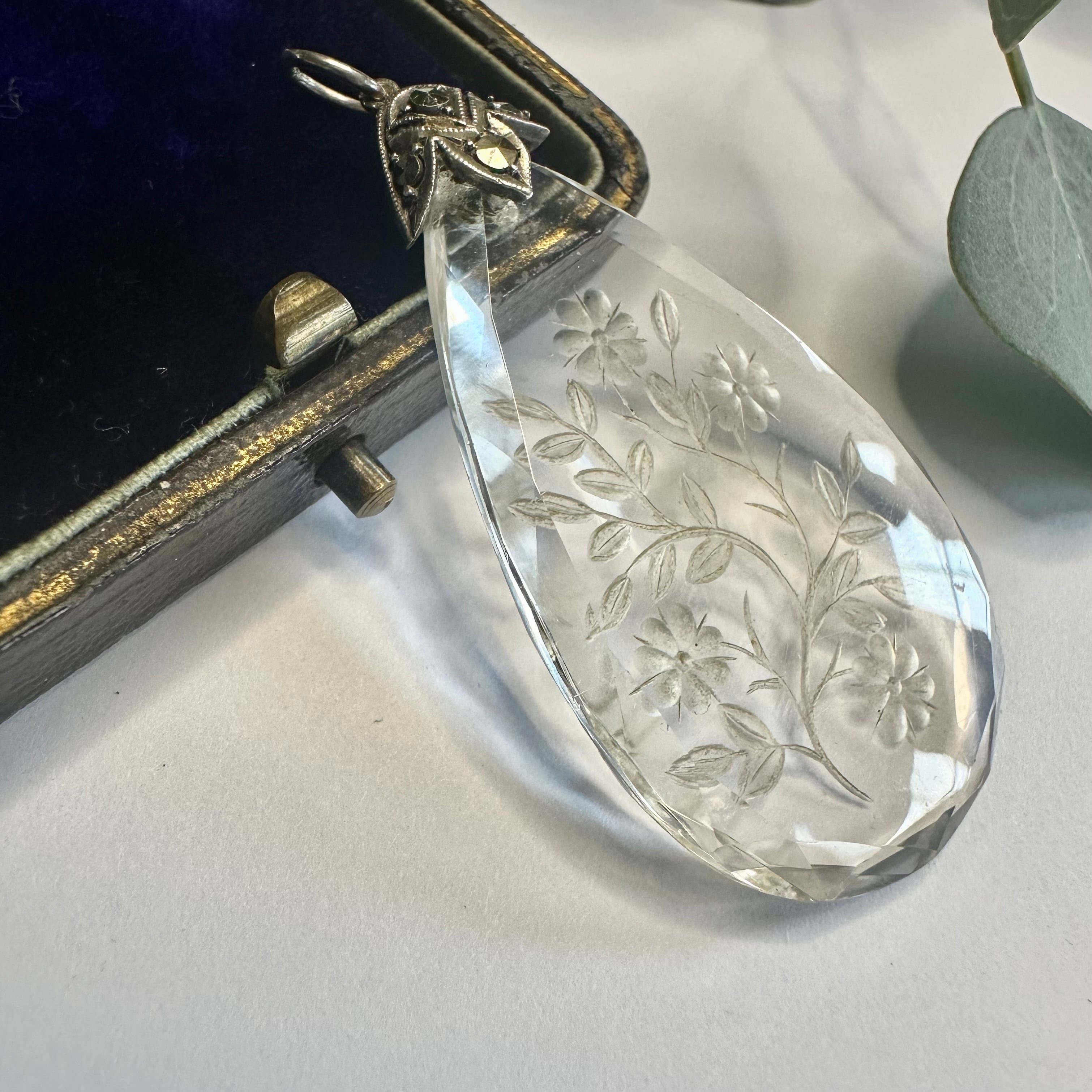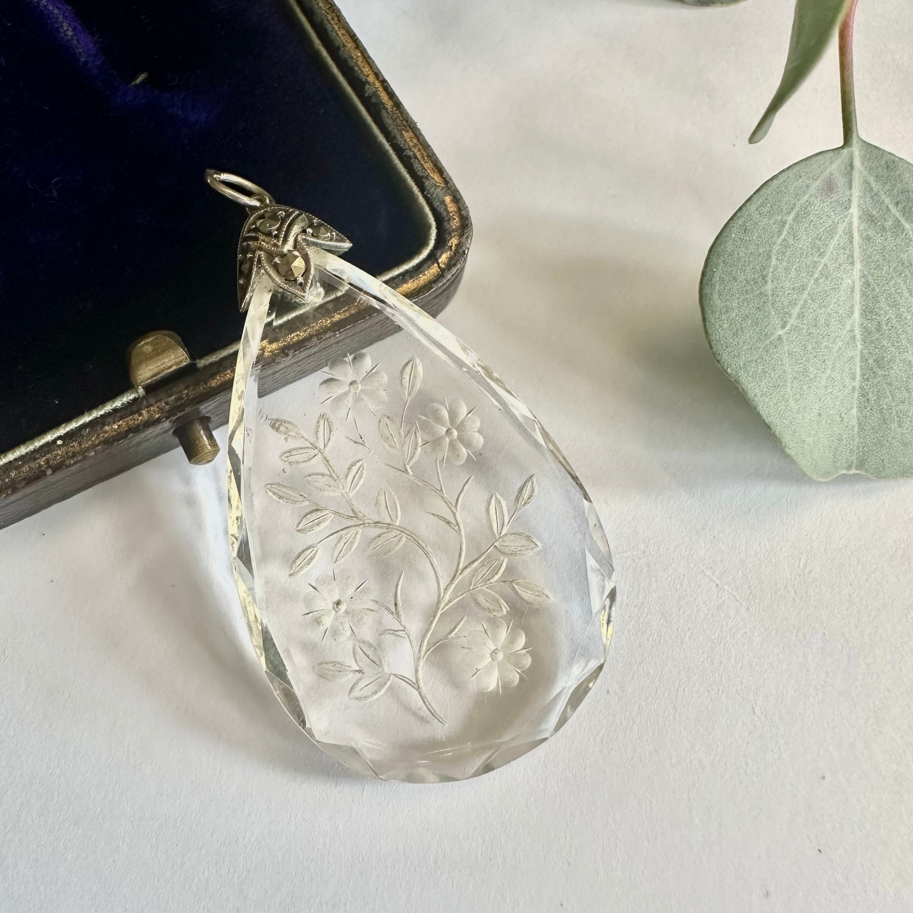 ロッククリスタル(水晶)のエングレーヴィングヴィクトリアンペンダントトップ