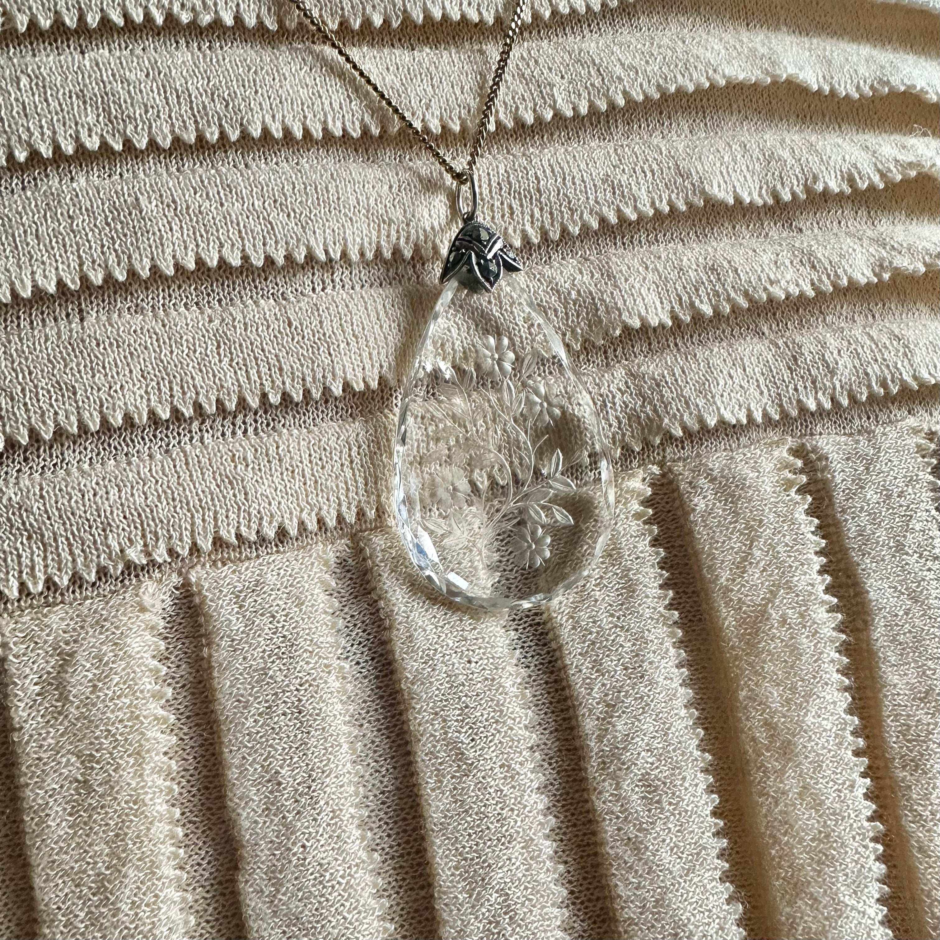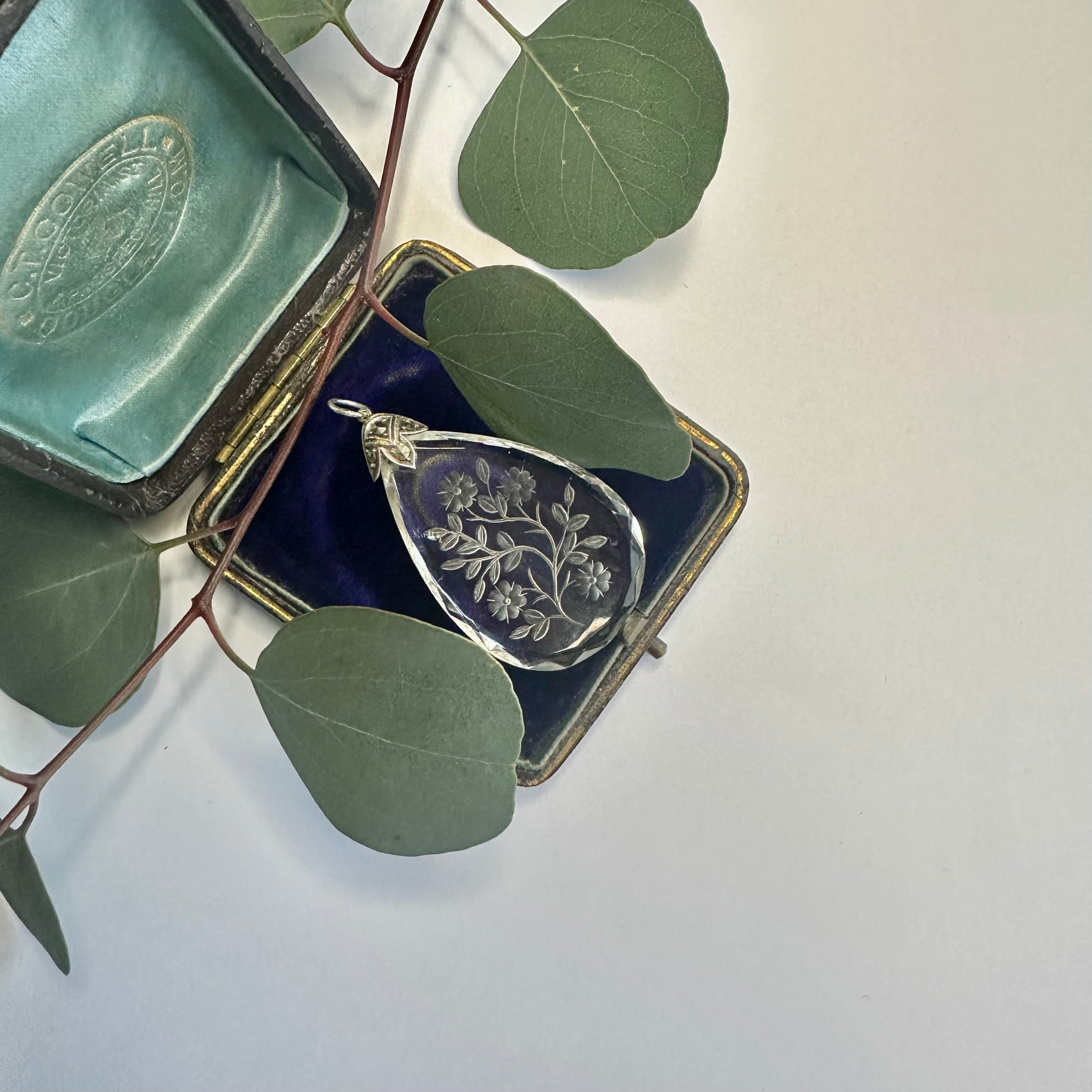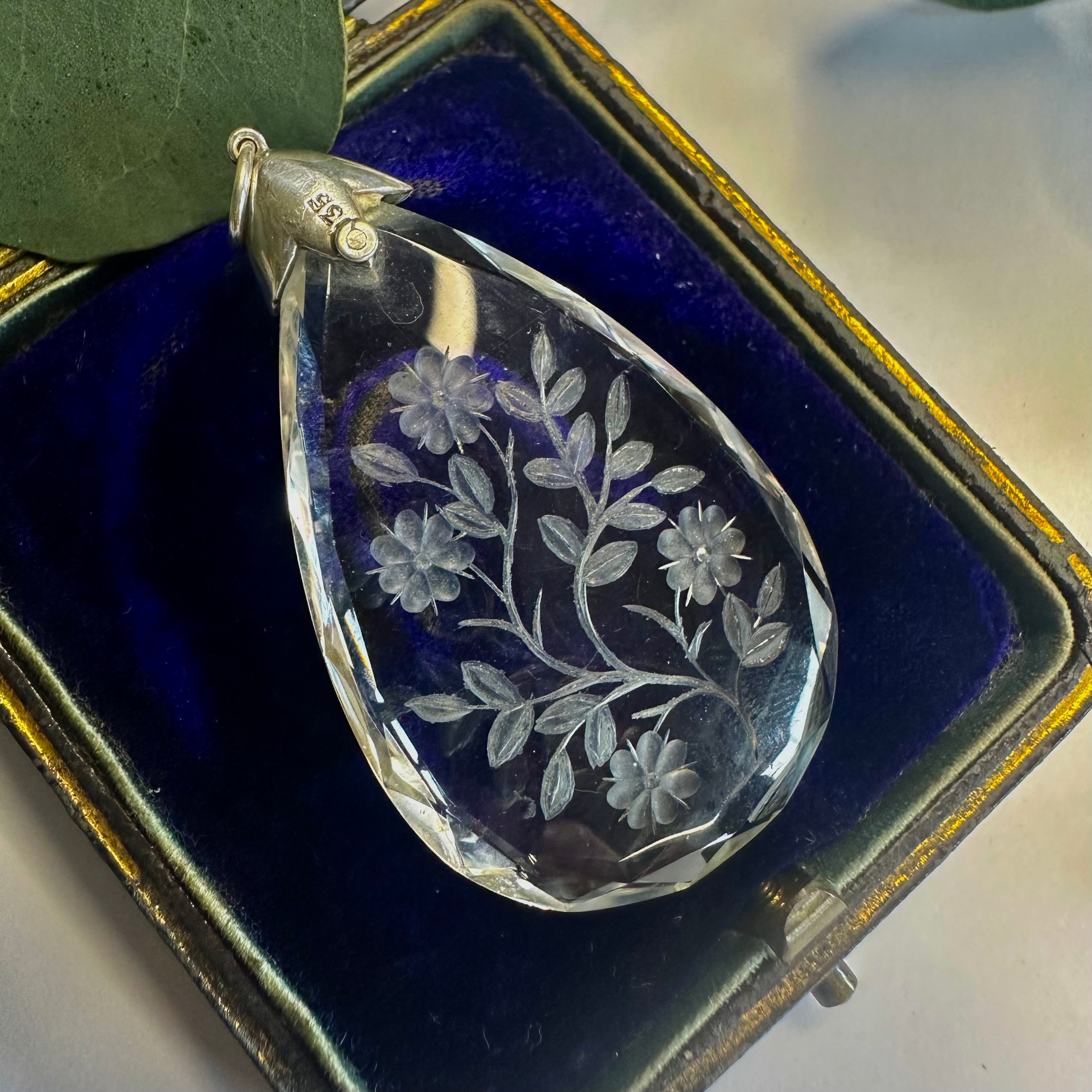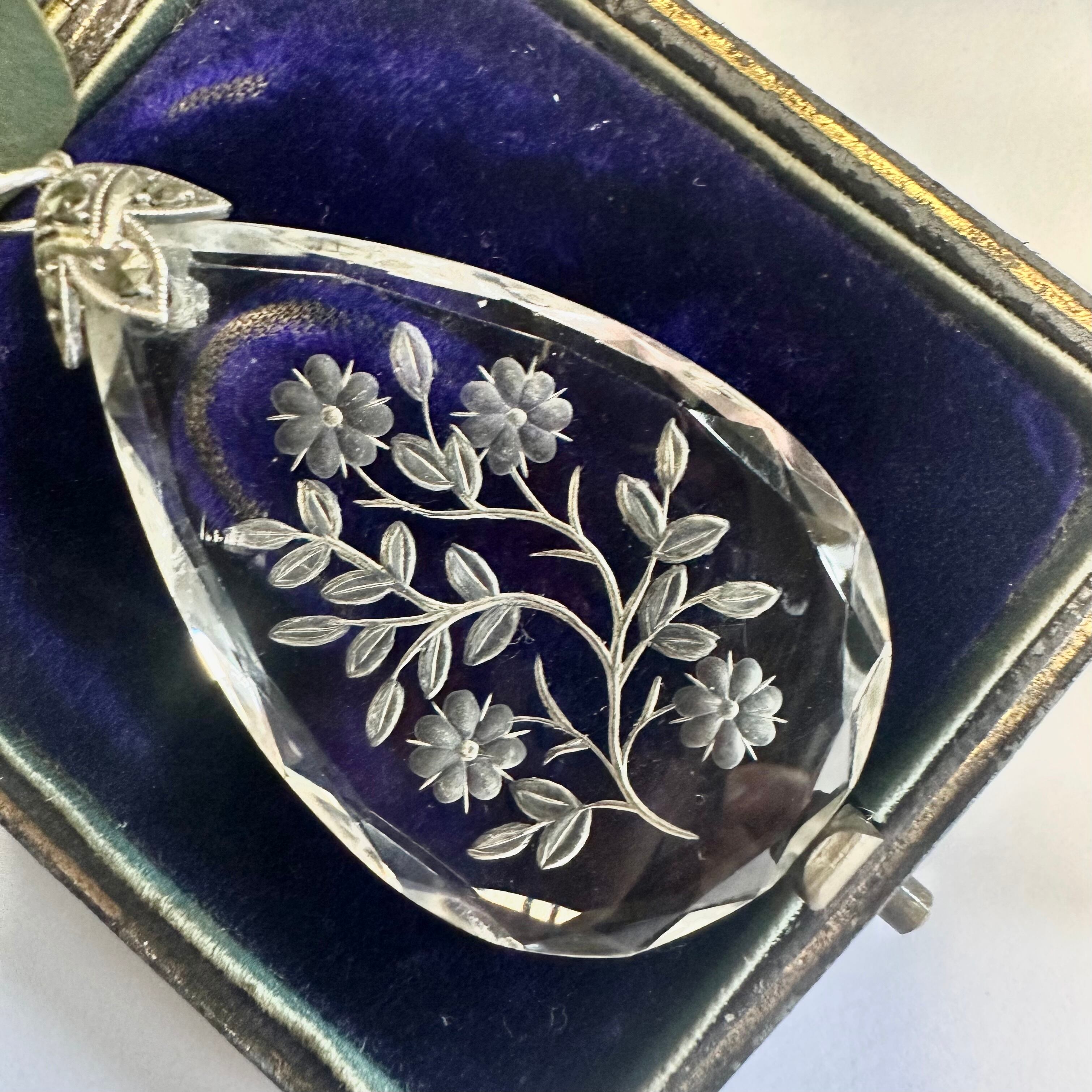 ロッククリスタル(水晶)のエングレーヴィングヴィクトリアンペンダントトップ