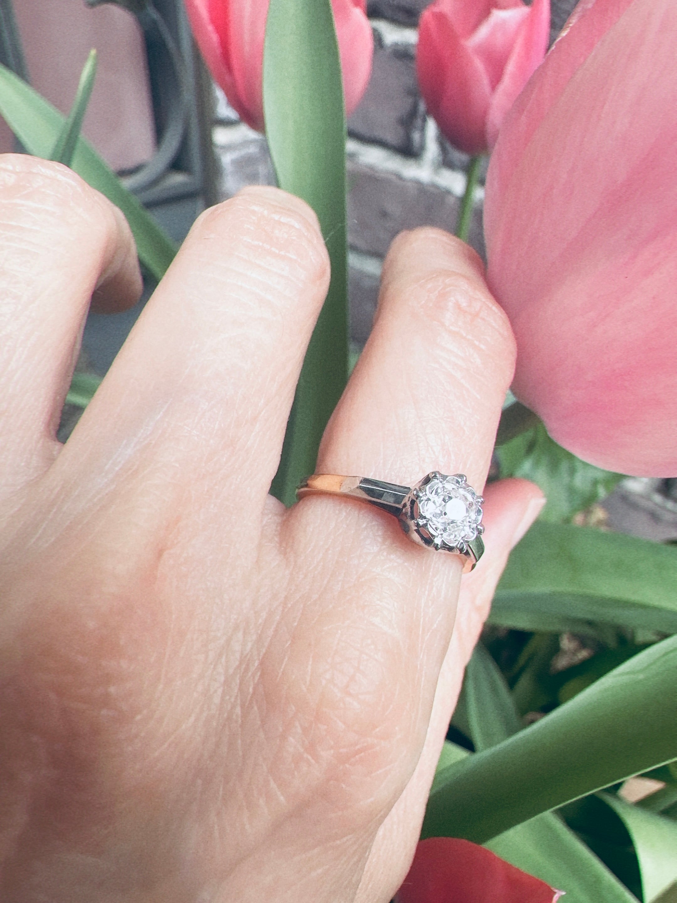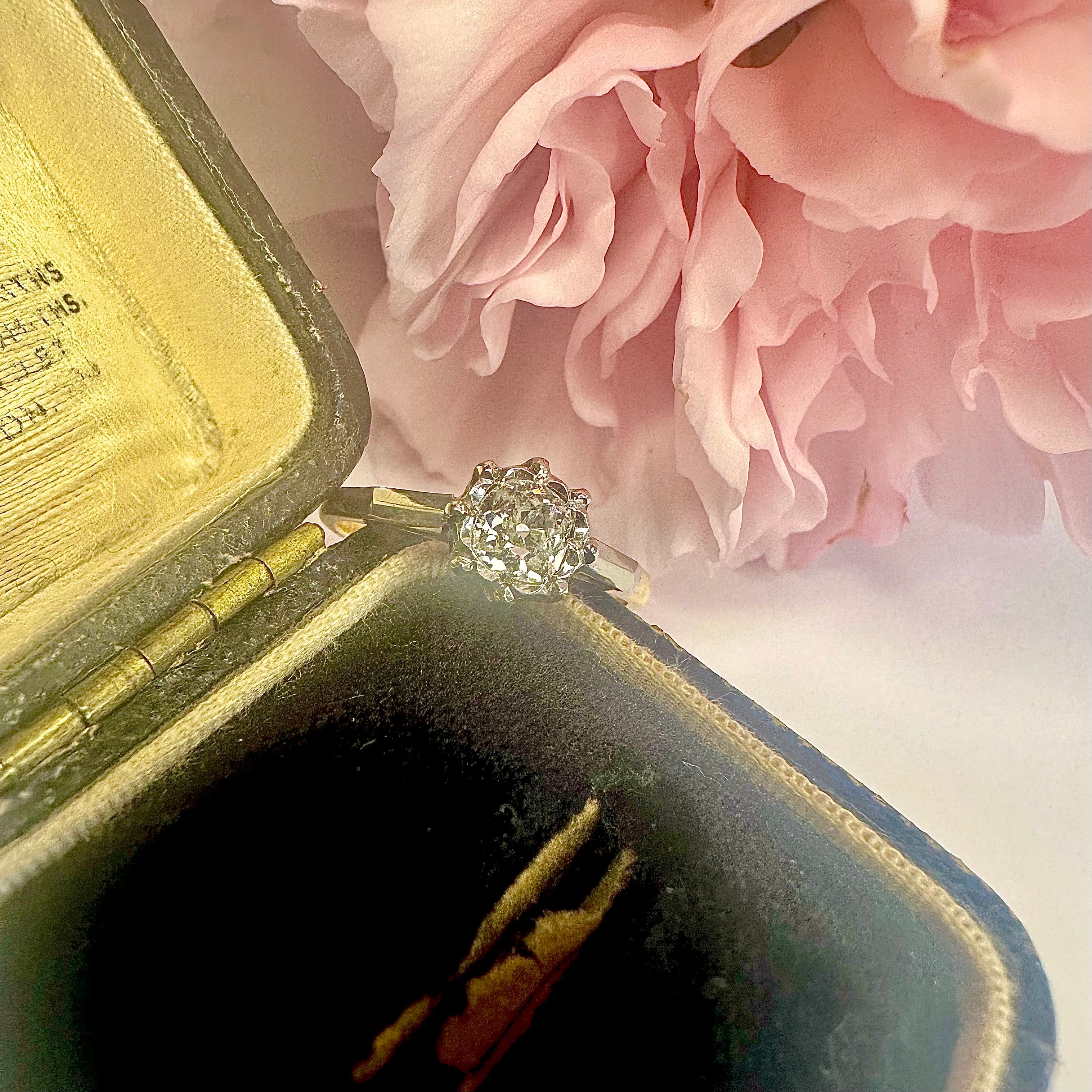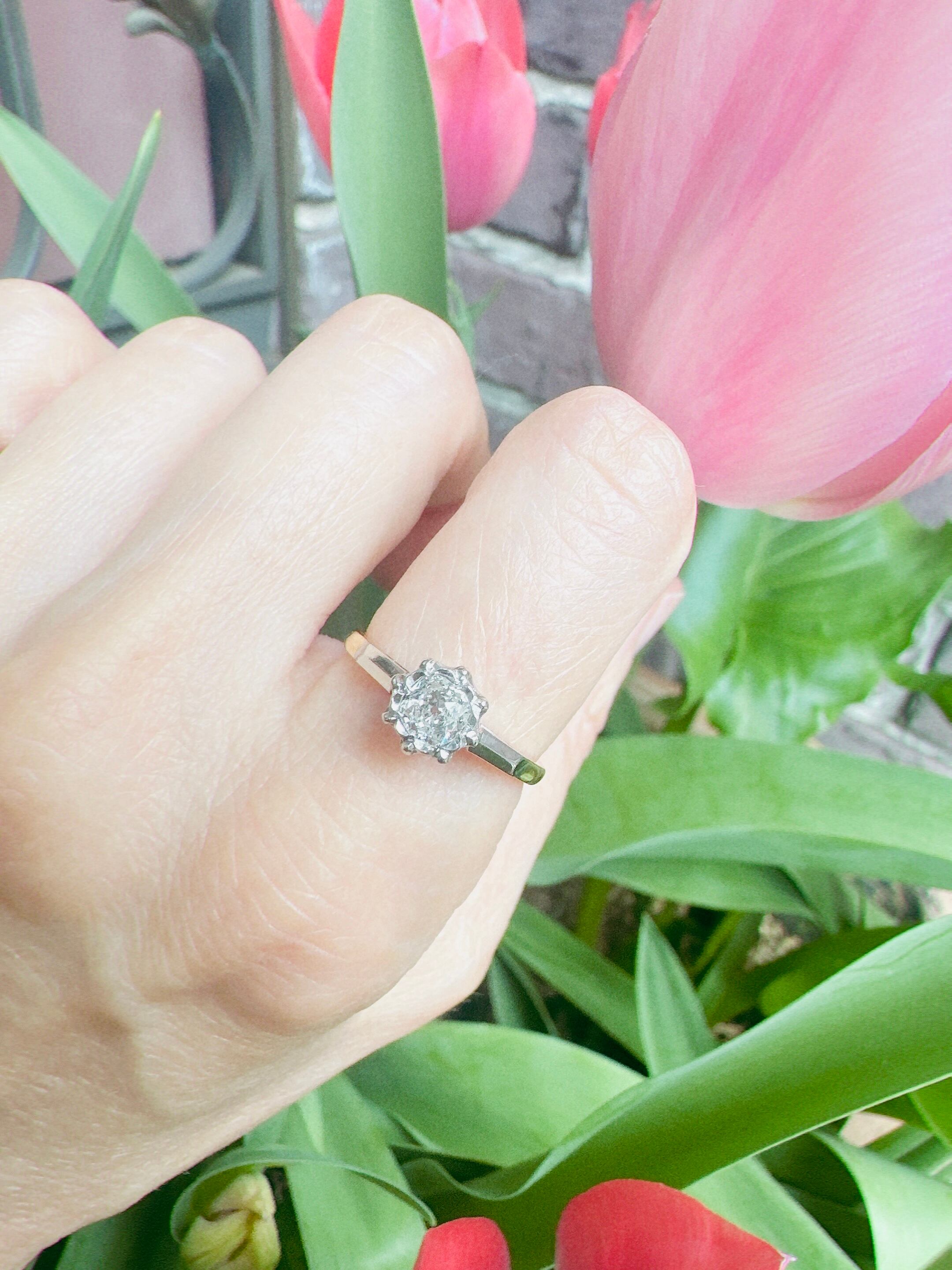 約6mm程のしっかりとした存在感を持つオールドヨーロピアンカットダイヤモンドのソリテールリング。