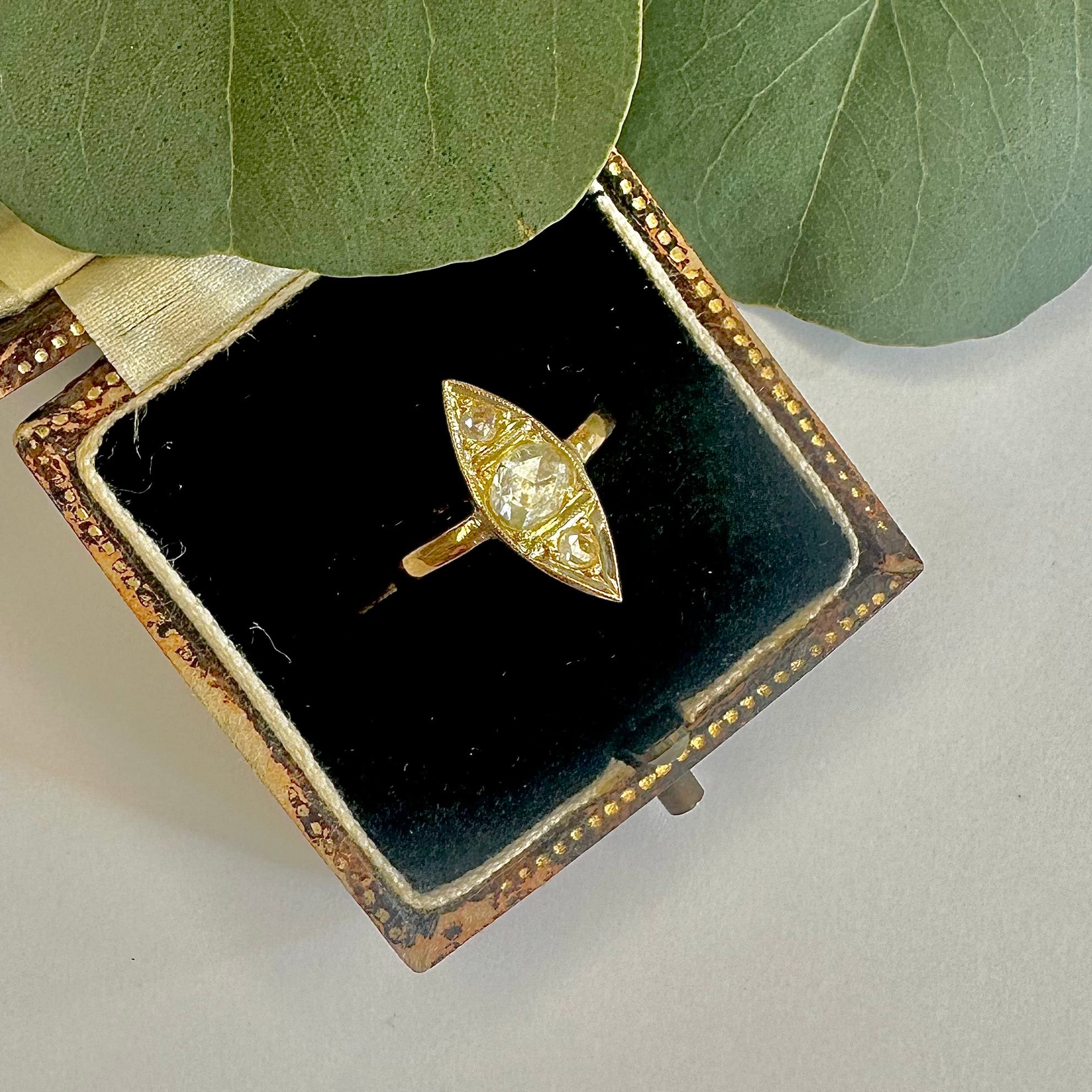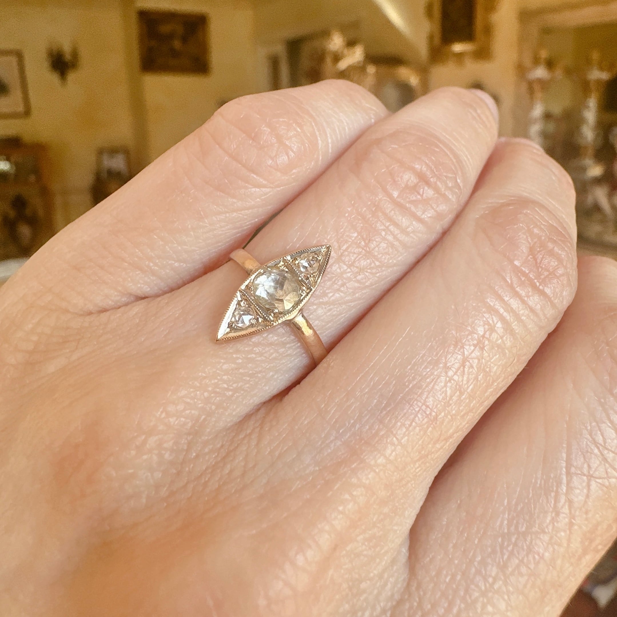 22金ローズカットダイヤモンド ヴィクトリアンナベットリング