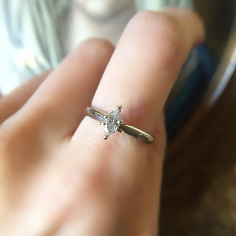 マーキスカットダイヤモンドのシャープなシルエットのスタイリッシュ感あふれるリング。