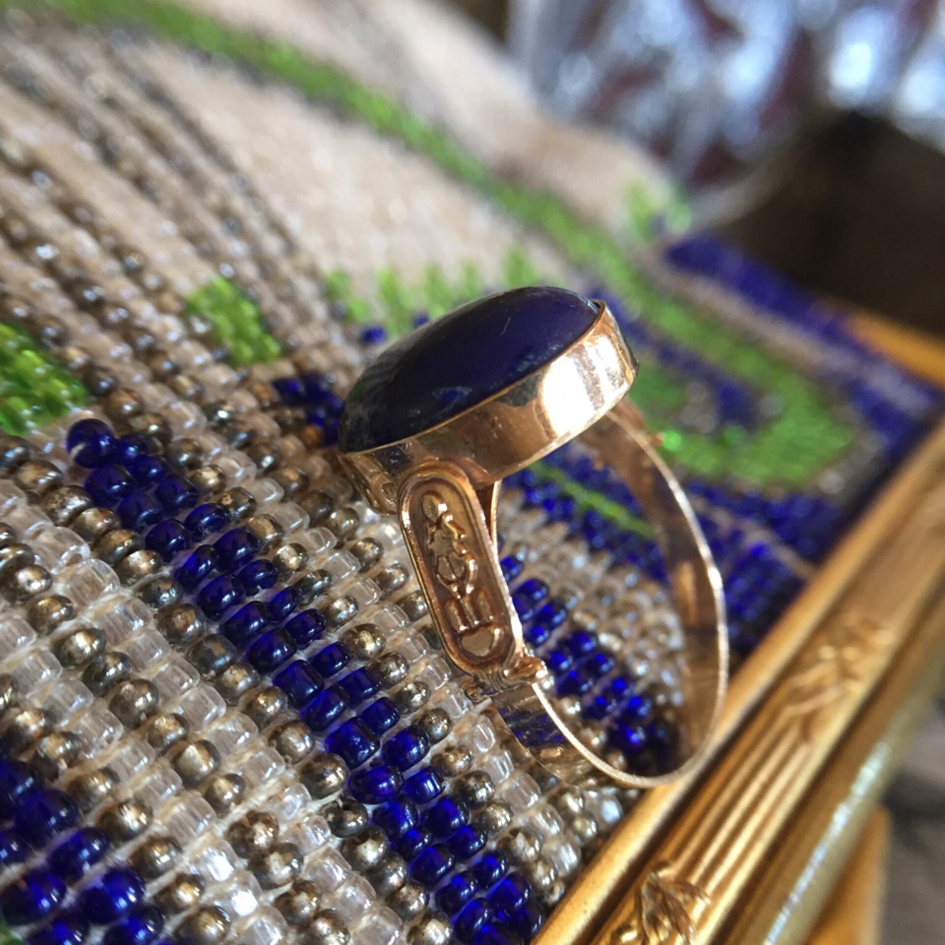 紺碧のブルーが美しいそんな石を、18金で囲み、夜空を見上げているような美しさが際立つリングです。