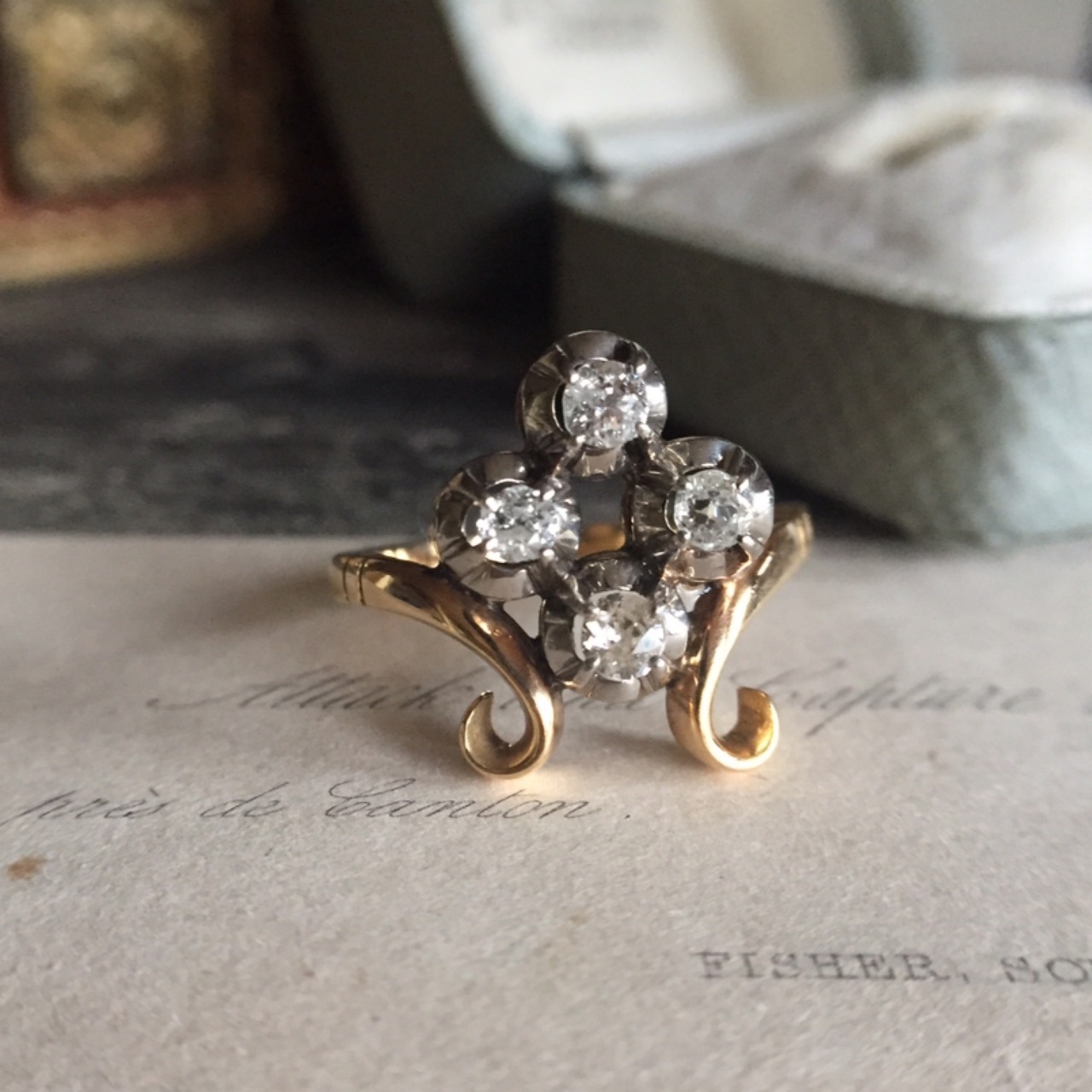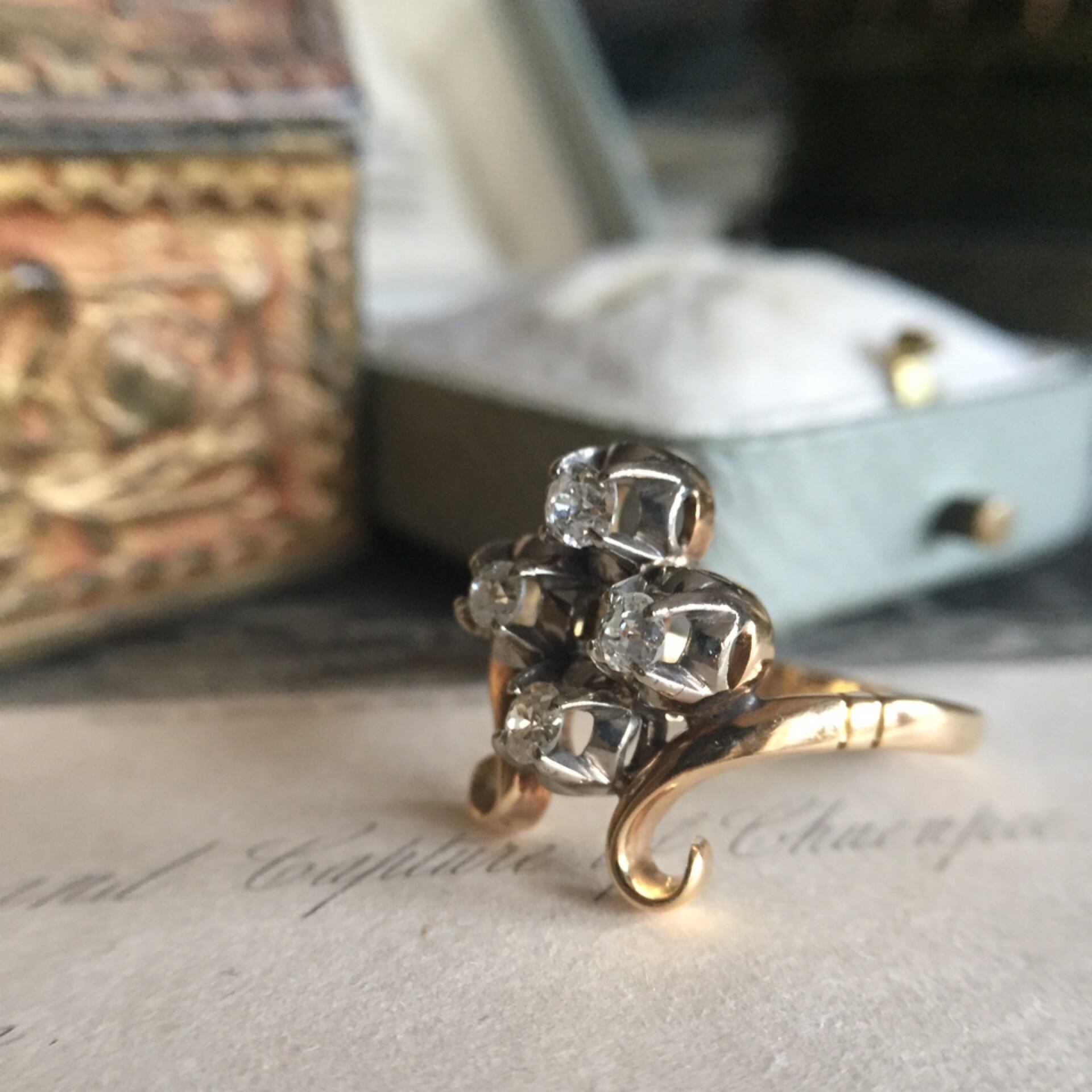 有機的なアール・ヌーヴォーの影響が見られる1900年頃のベルエポック時代のリングは、正統派な貴族の香りが残るおもむかきがあります。