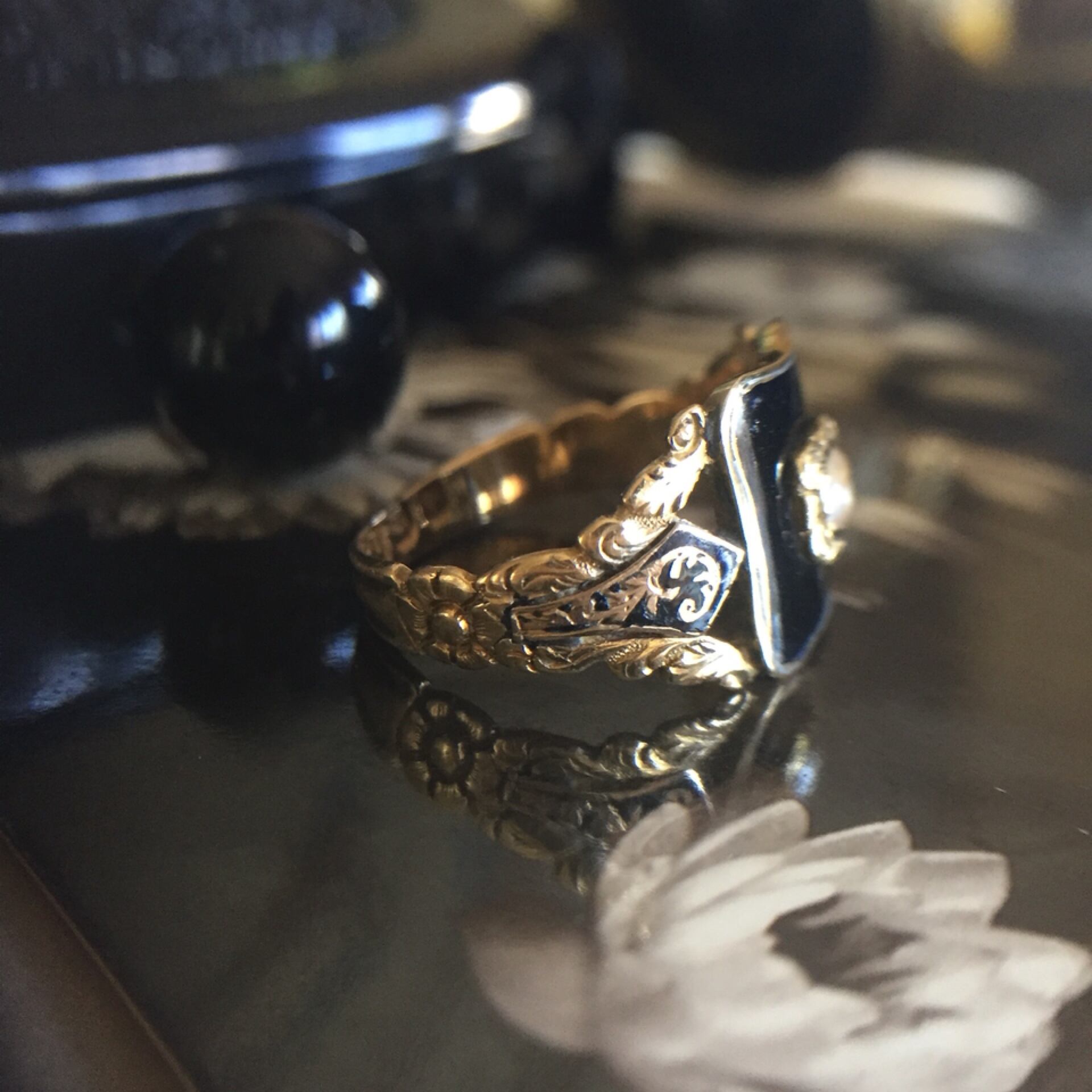ブラックエナメル&パールモーニングリング
