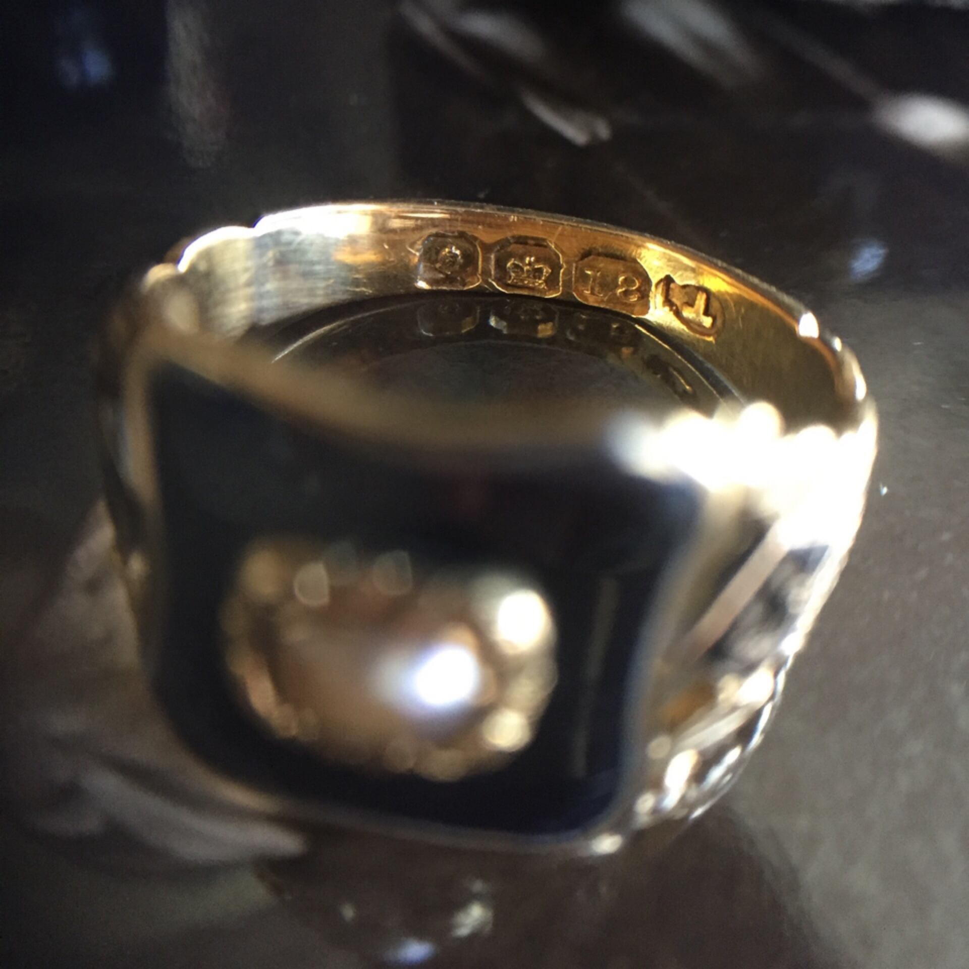モーニングジュエリーには故人の髪の毛などを入れるスペースを設けた物などもありますが、こちらのリングは残された家族が故人を偲び作ったリングです。