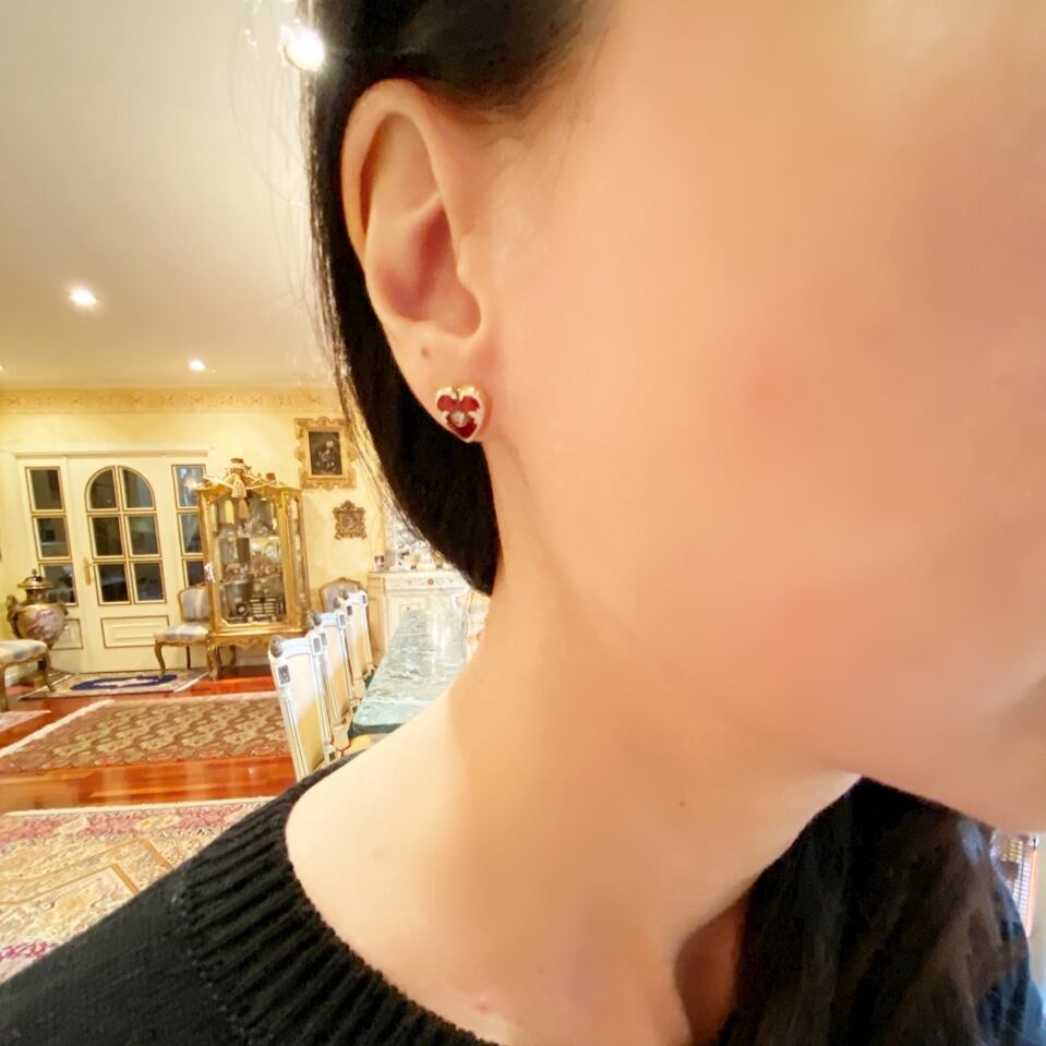秘密の気持ちをそっと閉じ込めたような可愛さを感じるピアスですが、全く子供っぽくならないのがやはりアンティークならではの深みかもしれないですね。
