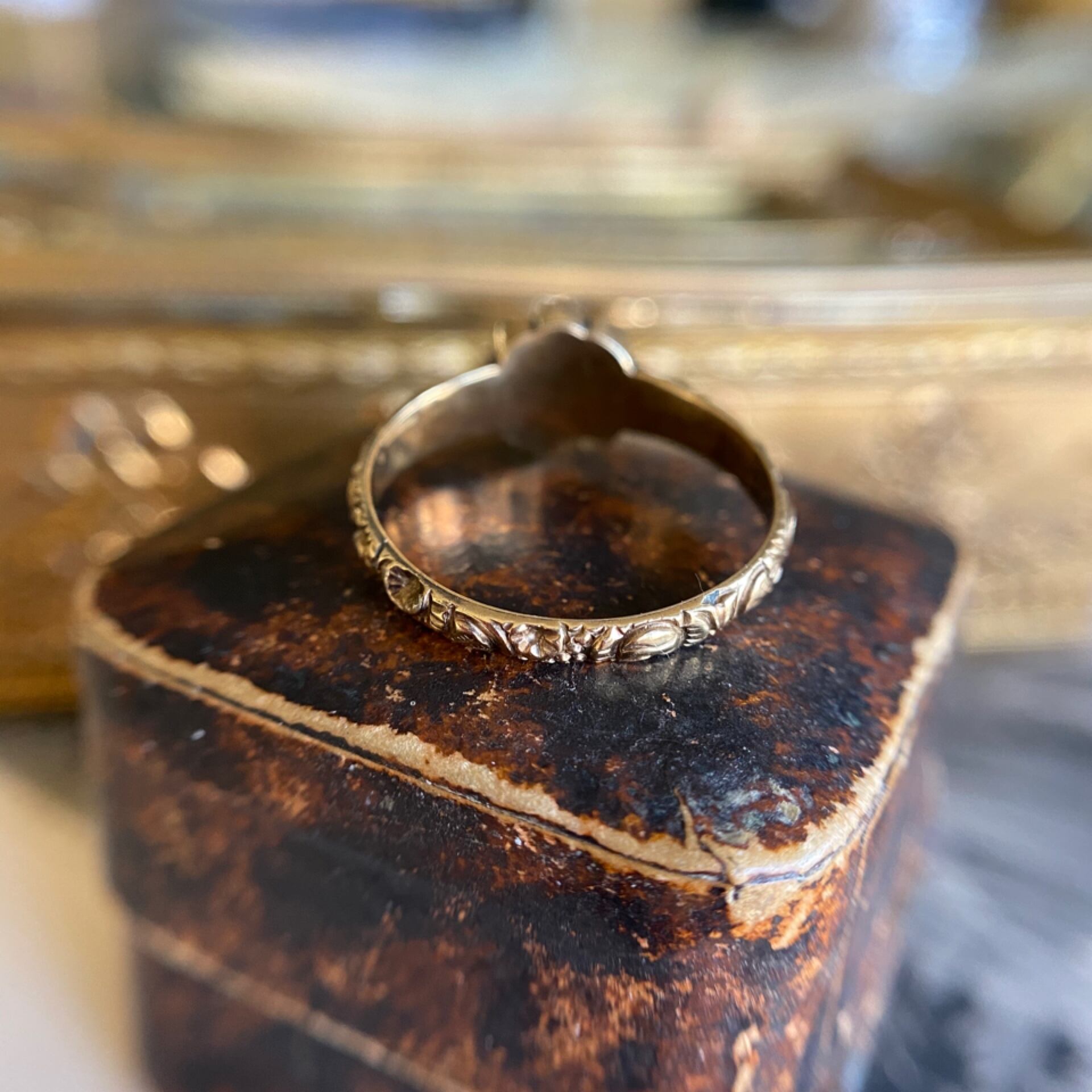 ジョージアン後半から初期ヴィクトリアン頃のこちらのリングはどうしたらこんなに愛らしいひと品を当時の方は作れるのだろうと思いを馳せてしまうほどにこのうえなくフェミニンなリングです。