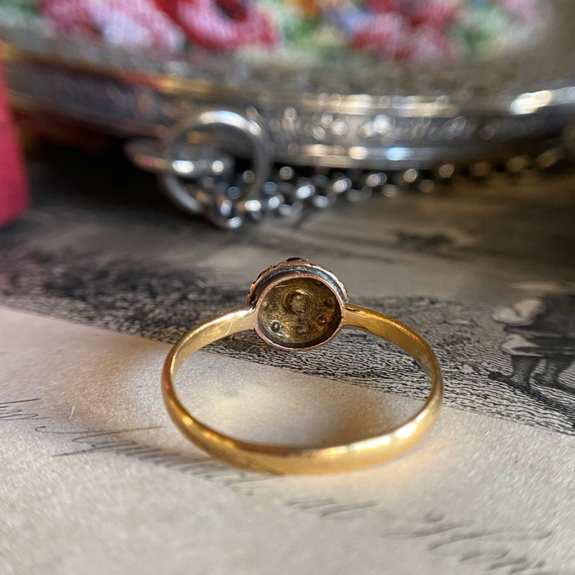 ローズカットされたガーネットが時代と共に丸みを帯びて、アンティークらしい風合いがアンティーク好きにはたまらないひと品ではないでしょうか。