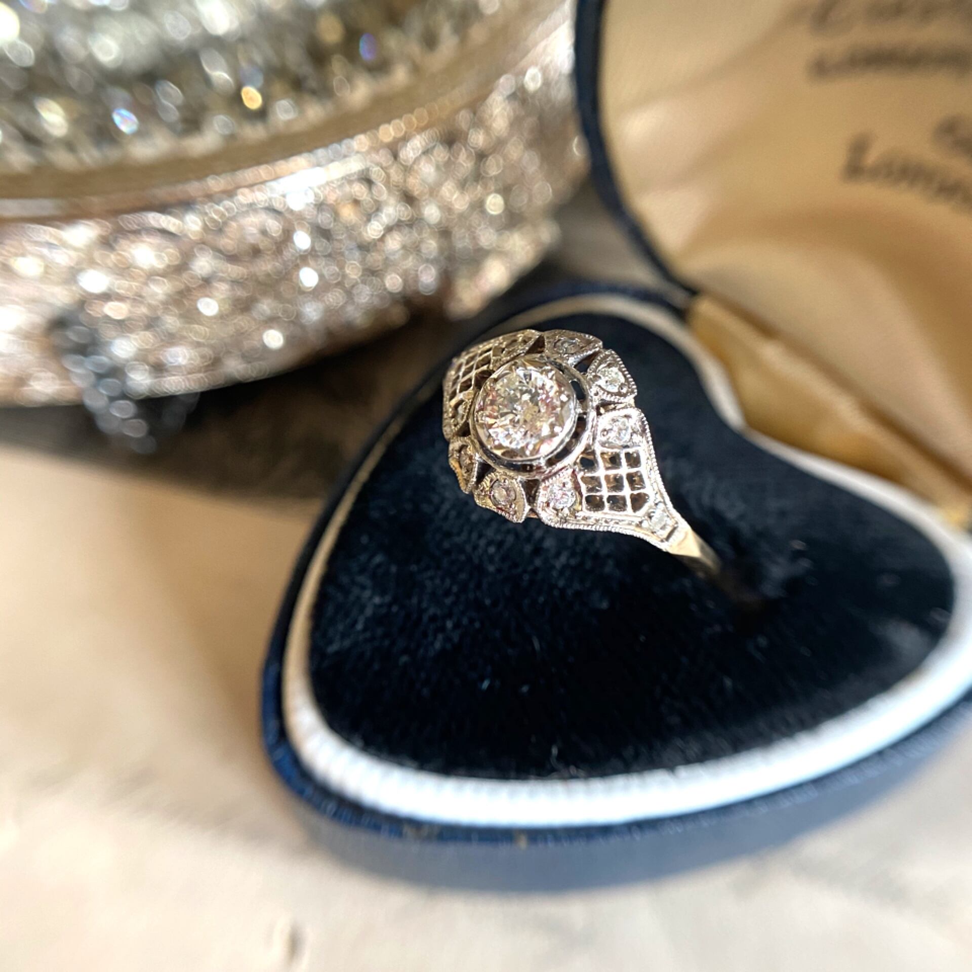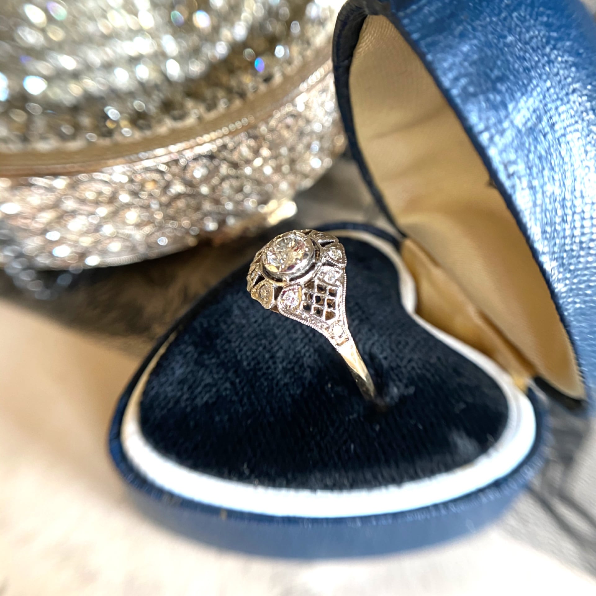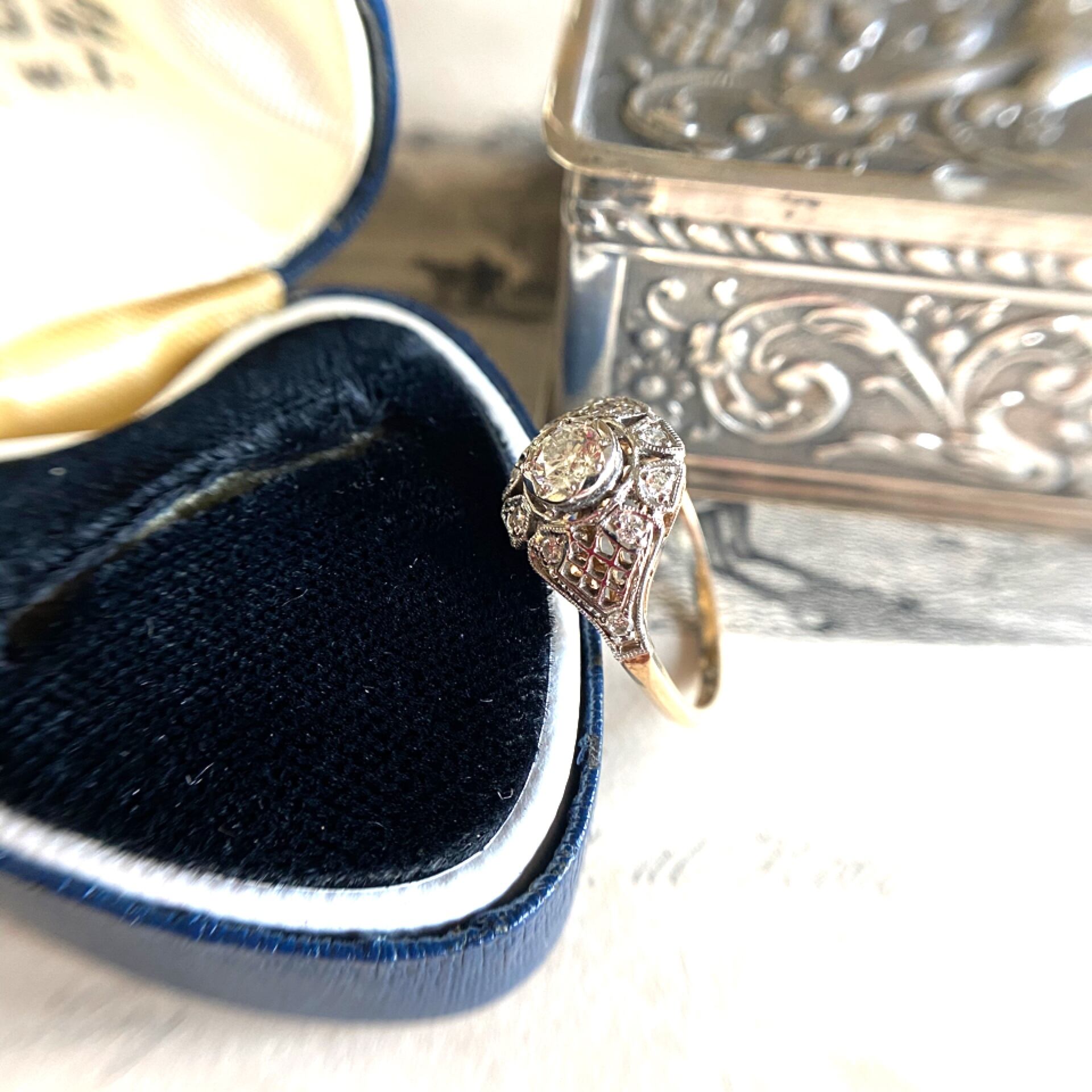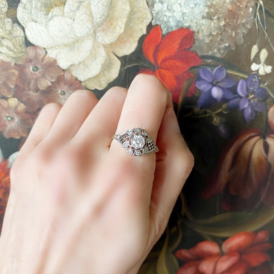 両面に透かしの金細工が施されたrococoの息吹を感じる20世紀初頭のリング。