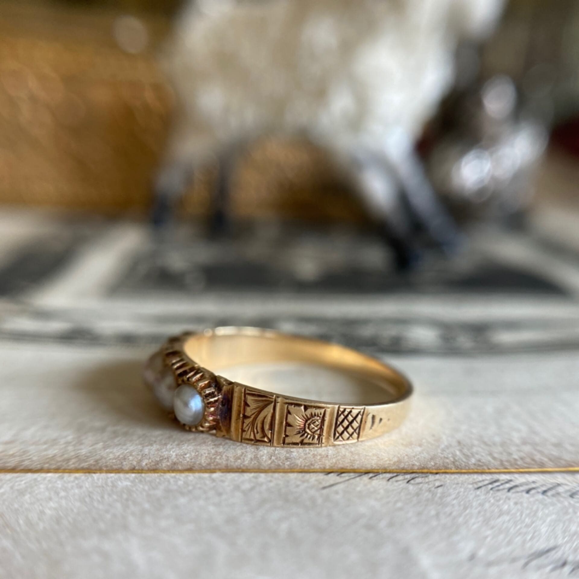 ナチュラルパール一文字ヴィクトリアンリング