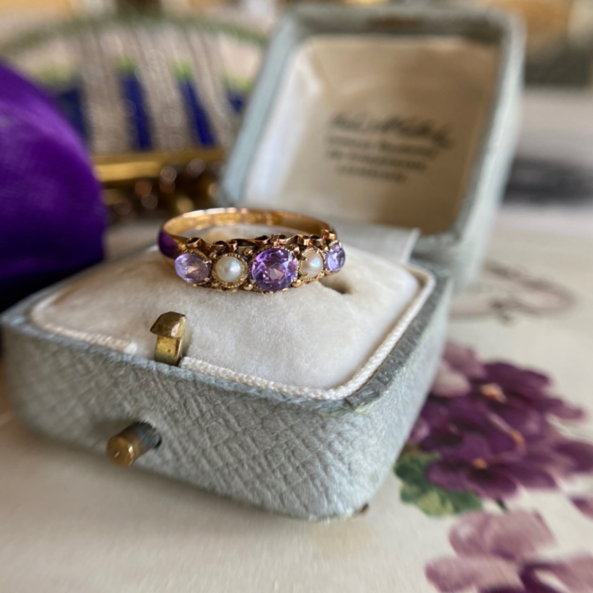 アメシスト&ナチュラルパールヴィクトリアンリング