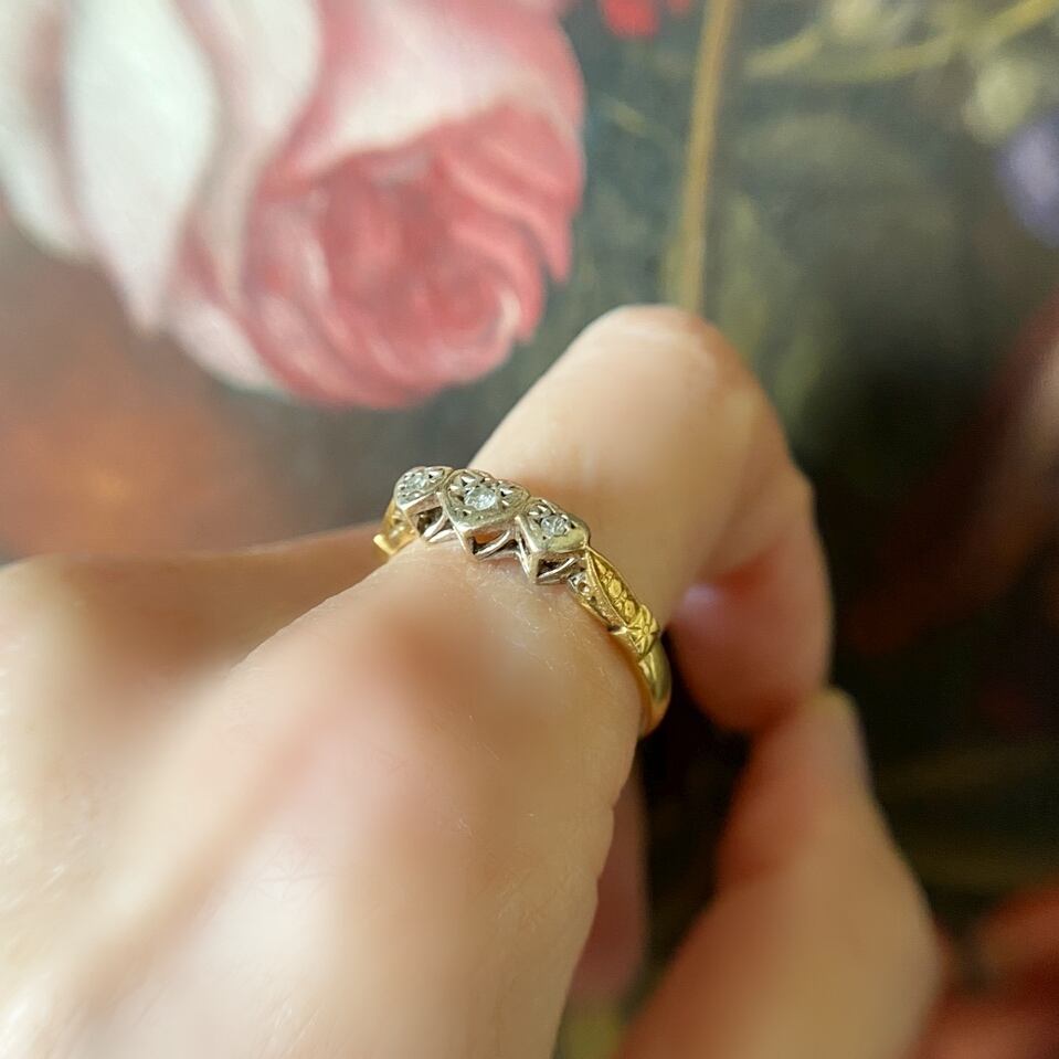 ハートが3つ並んだ可愛らしいトリロジーリング。