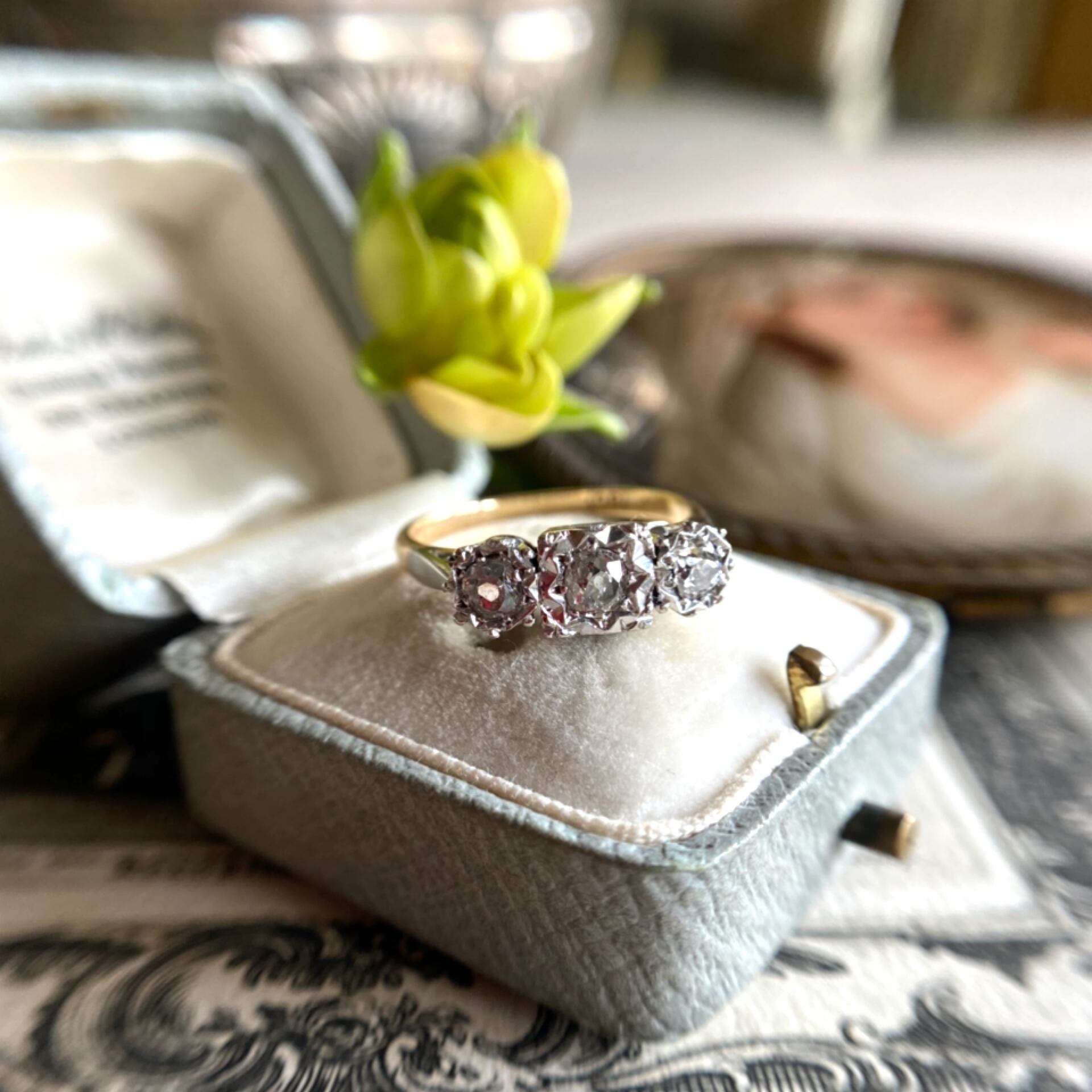 人生の過去と未来と現在を現すトリロジーリングはエンゲージリングとしても人気のあったデザインでした。