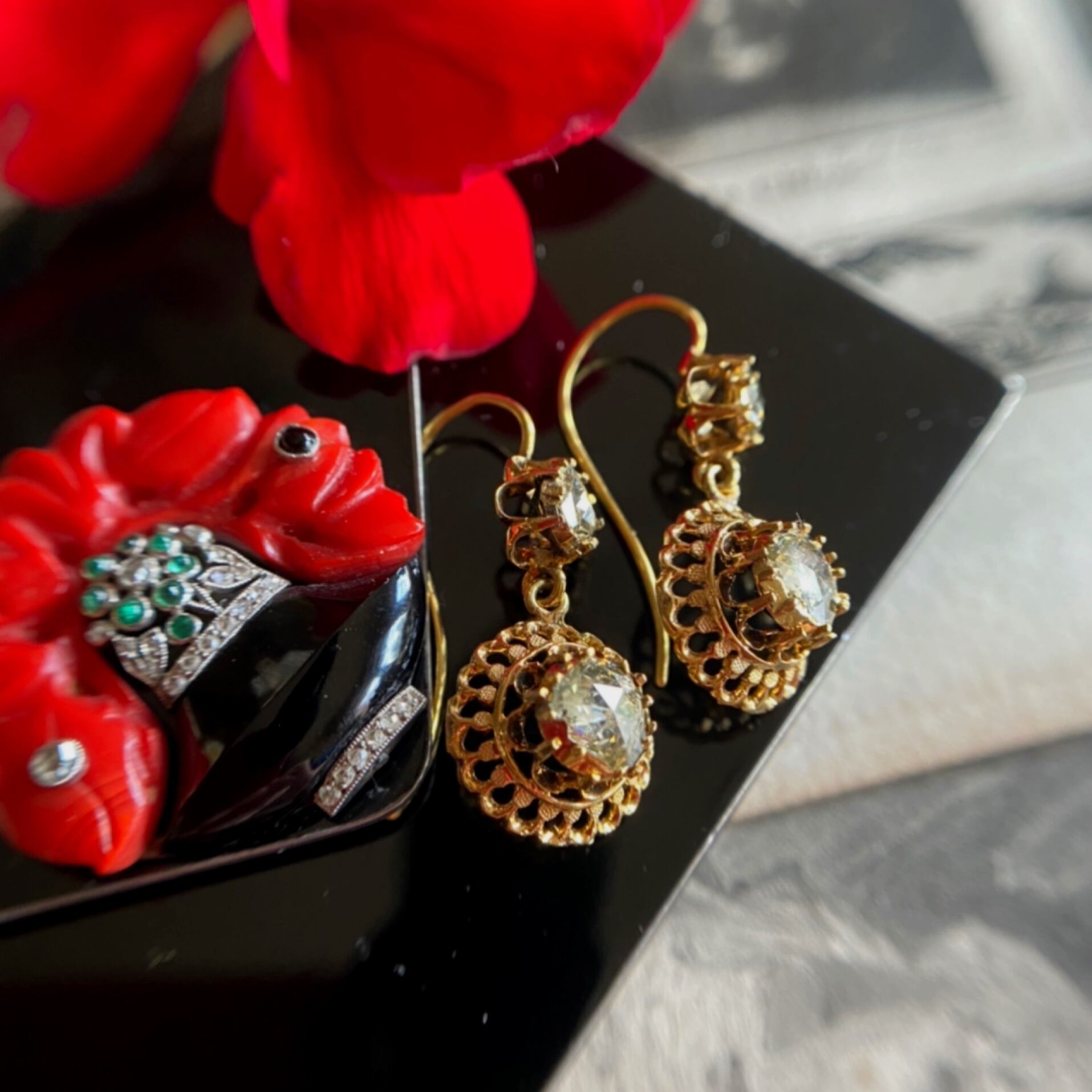 ヴィクトリアンローズカットダイヤモンドピアス