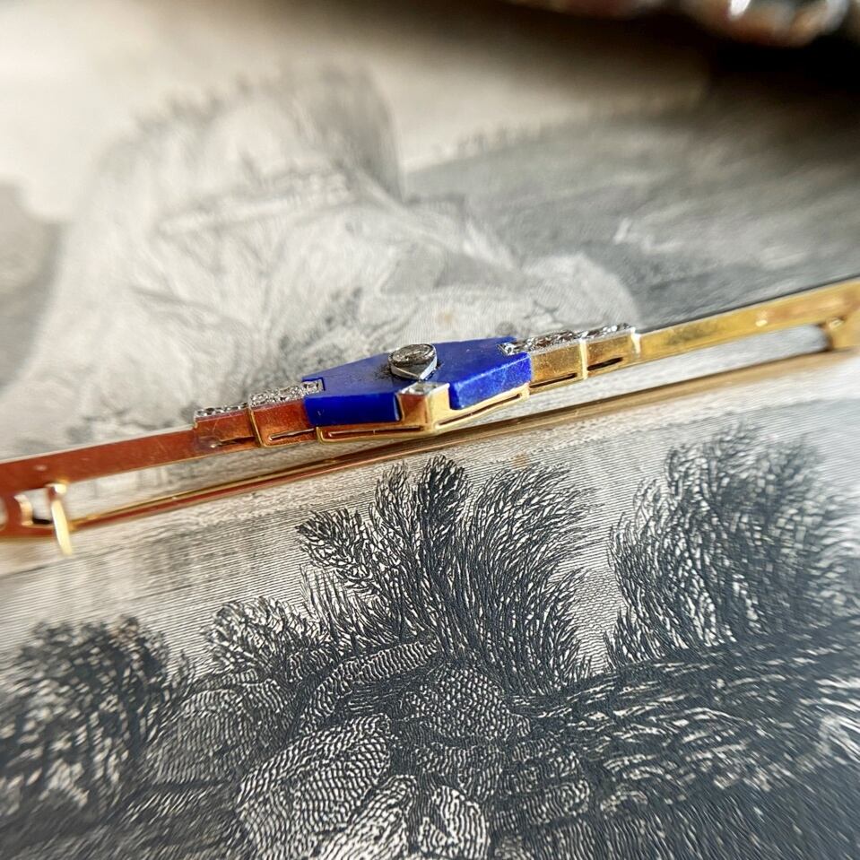 エドワーディアン ラピスラズリ&ダイヤモンドブローチ