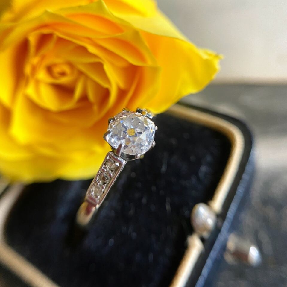 コロンとした奥行きのある輝きにうっとりしてしまうオールドマインカットダイヤモンドのリング。