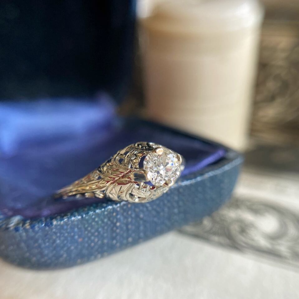アールデコ透し彫りオールドマインカットダイヤモンドリング