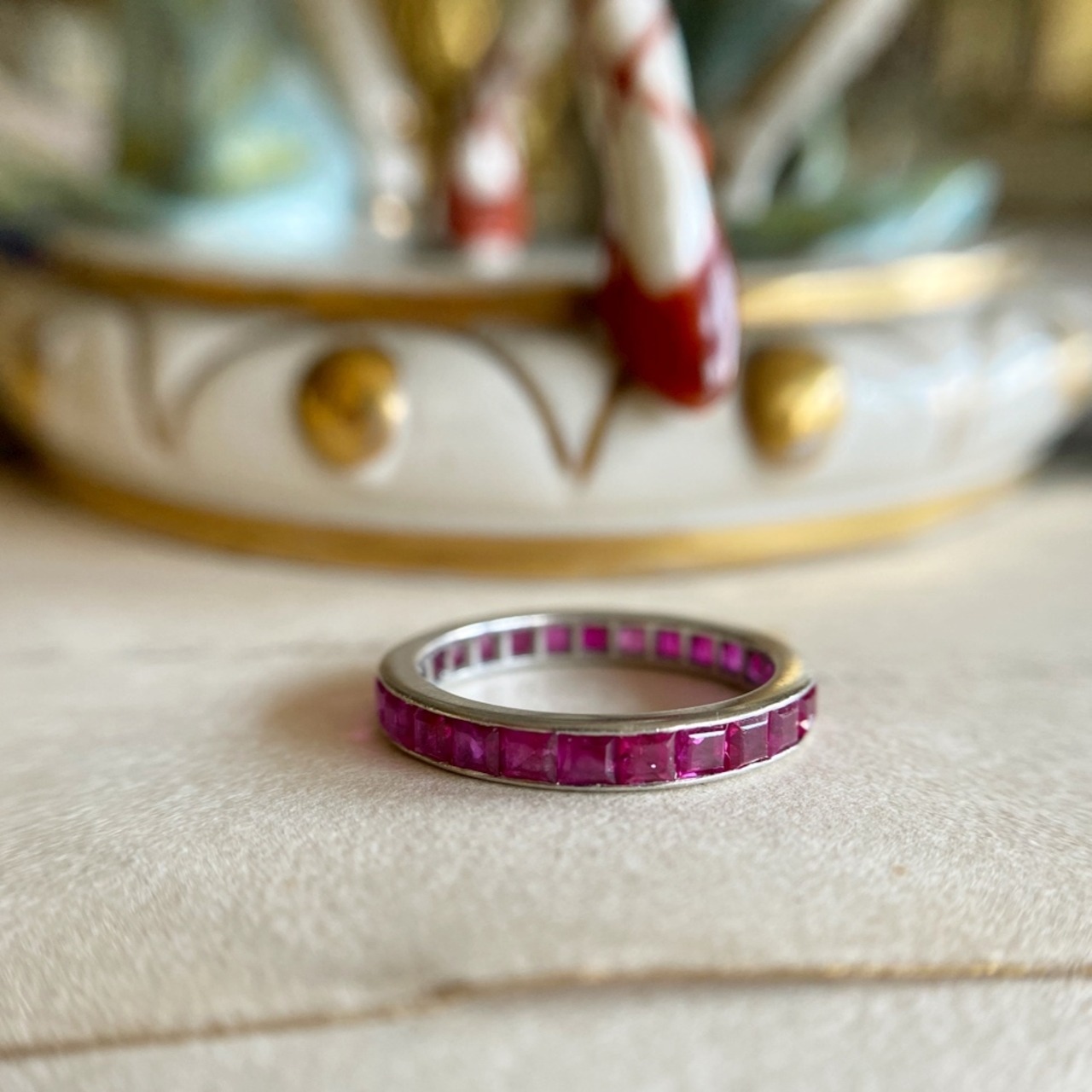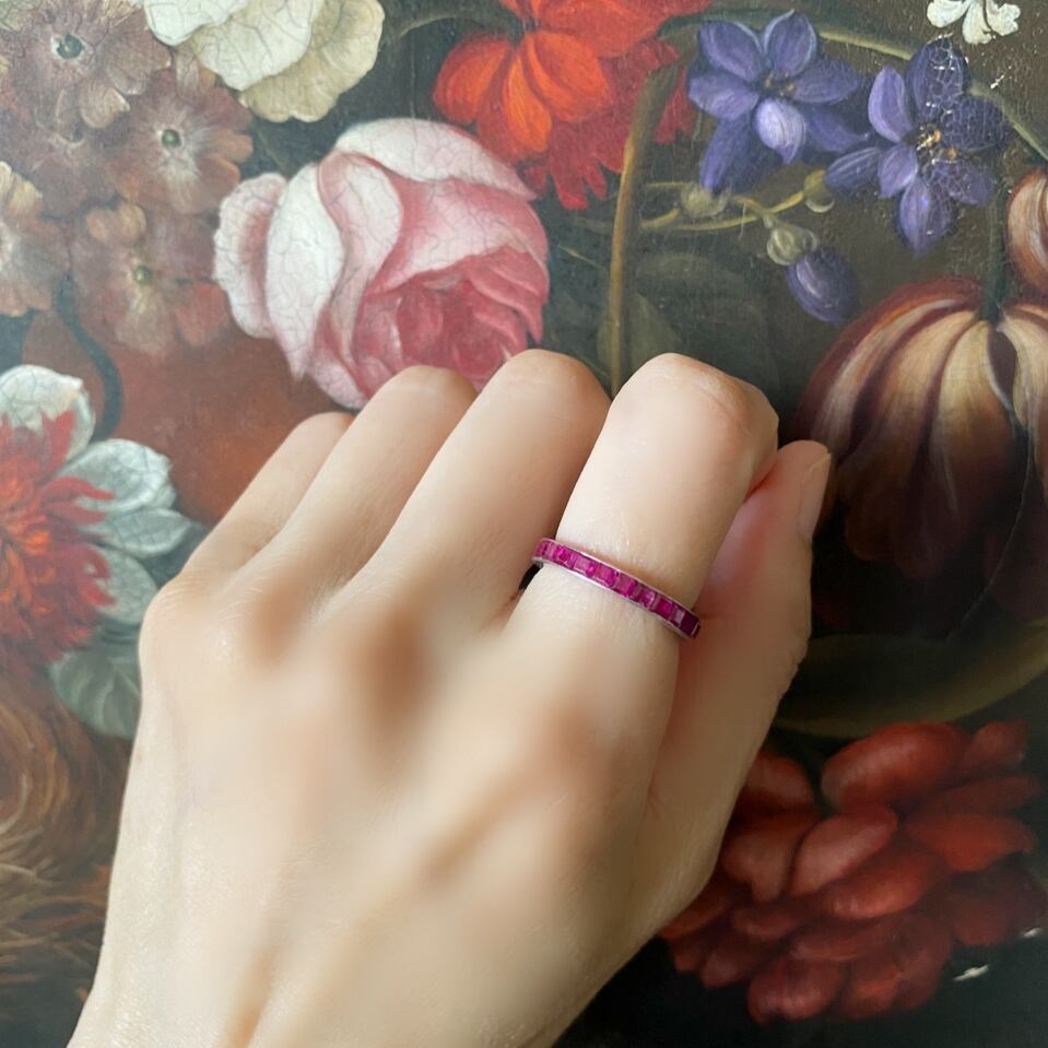 天然ルビーを用いたカリブレカットのエタニティーリング。
