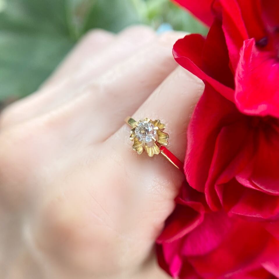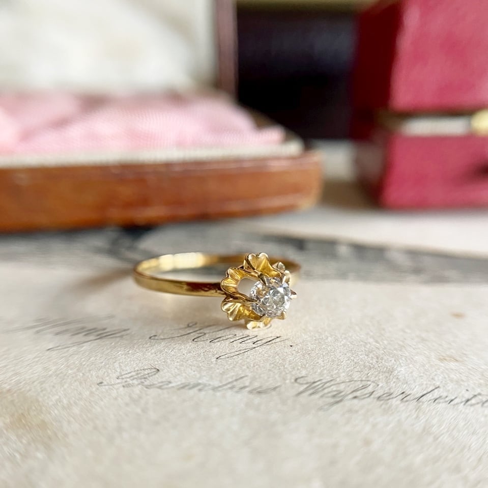 さくらの花弁のようなバターカップセッティングのヴィクトリアンリング。