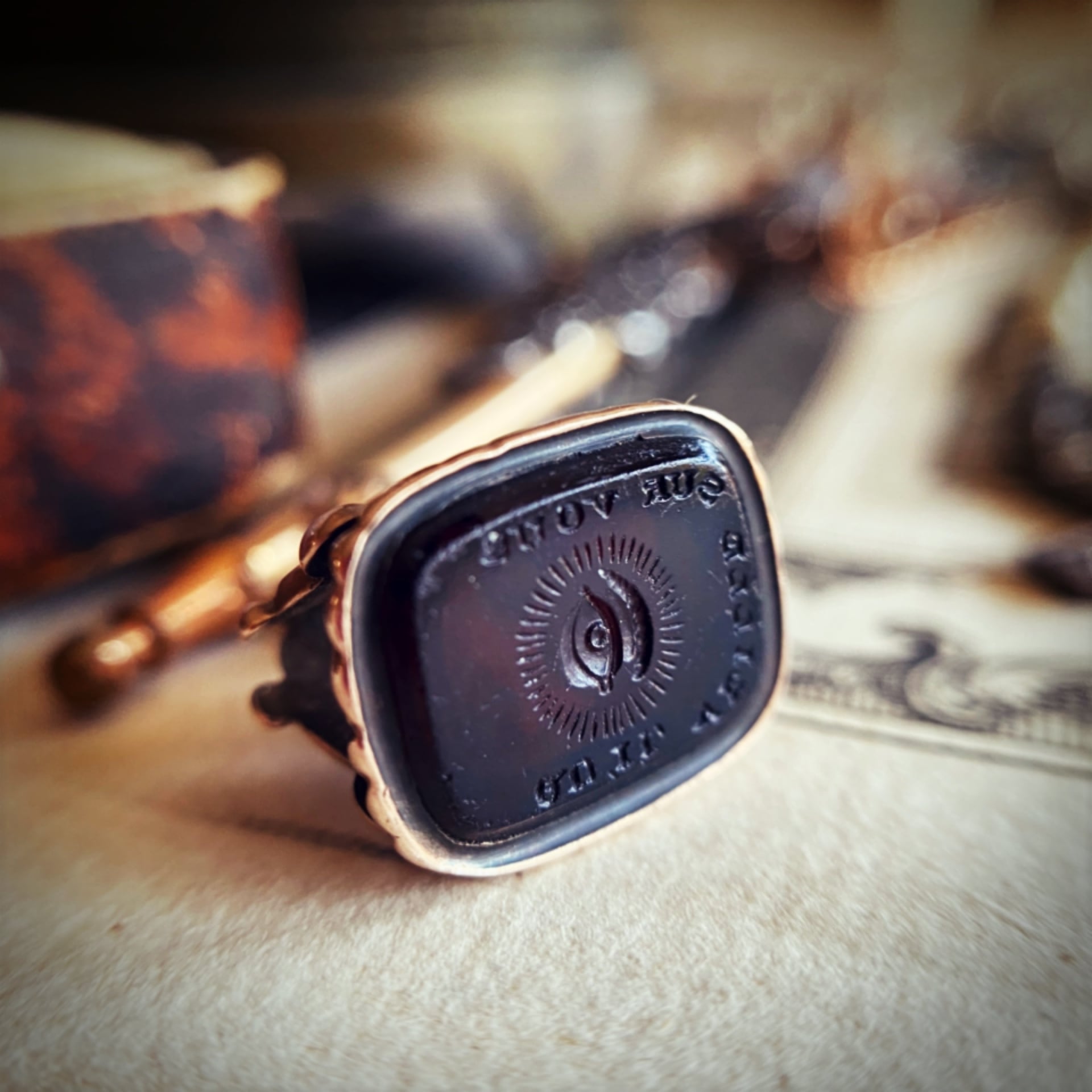 アンティークジュエリーの中でコレクターズアイテムのひとつとして人気のあるフォブシールは小振りな為、ペンダントとしても美しく、また実際にフォブシールとして使うこともできるので嬉しいですよね!