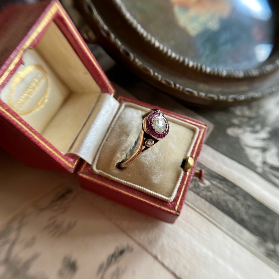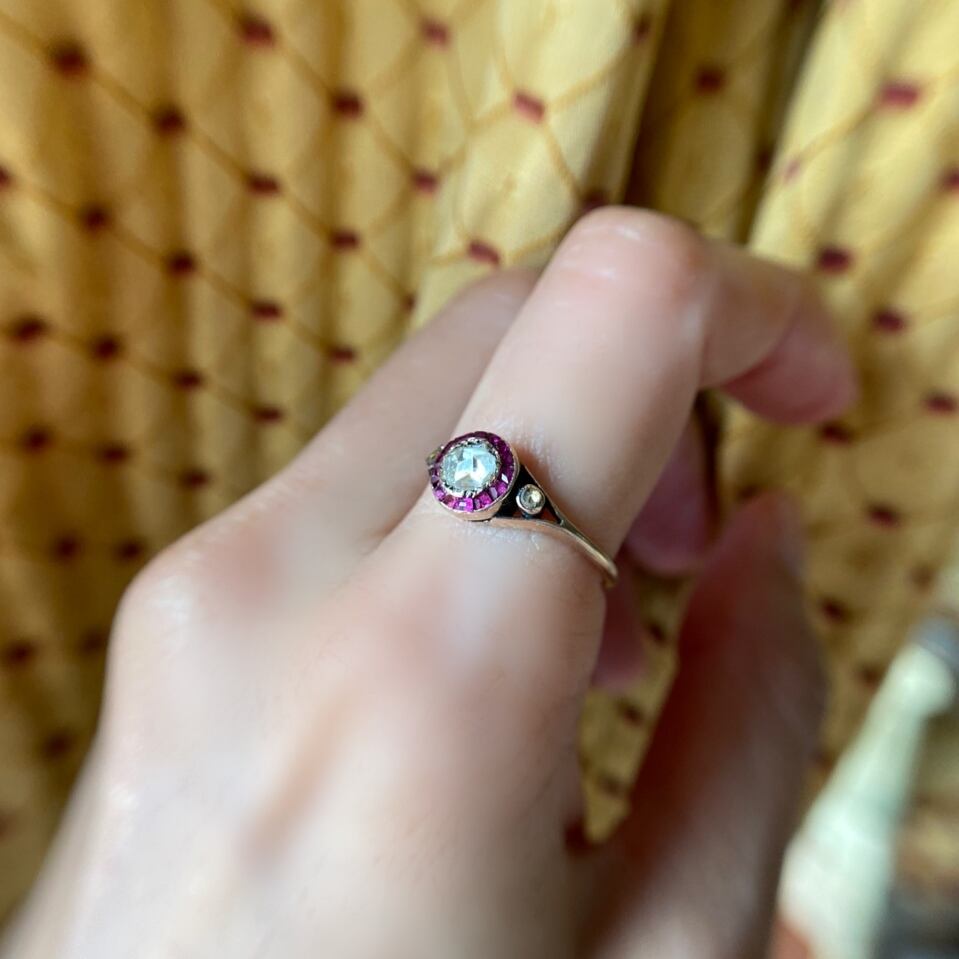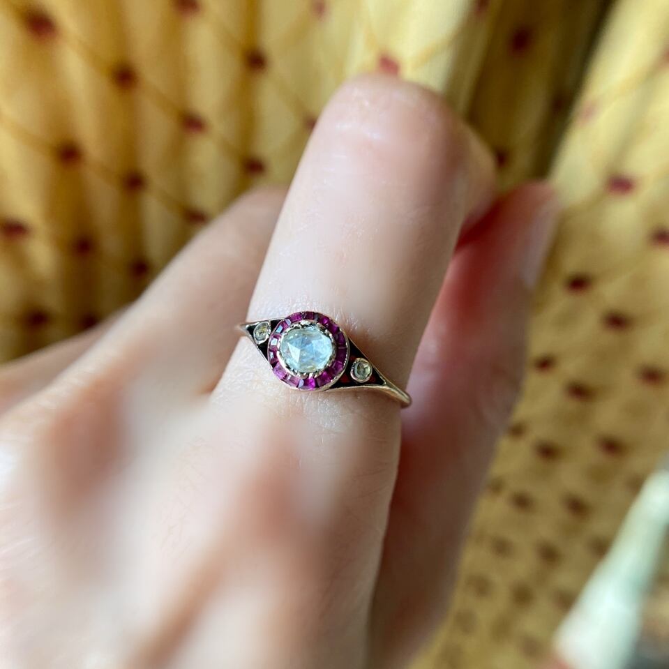 ダッチローズカットダイヤモンド&ルビークラスターリング