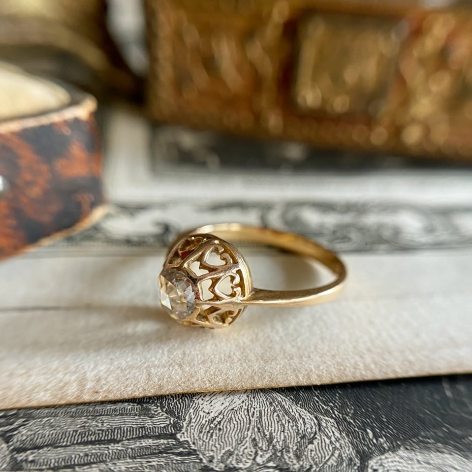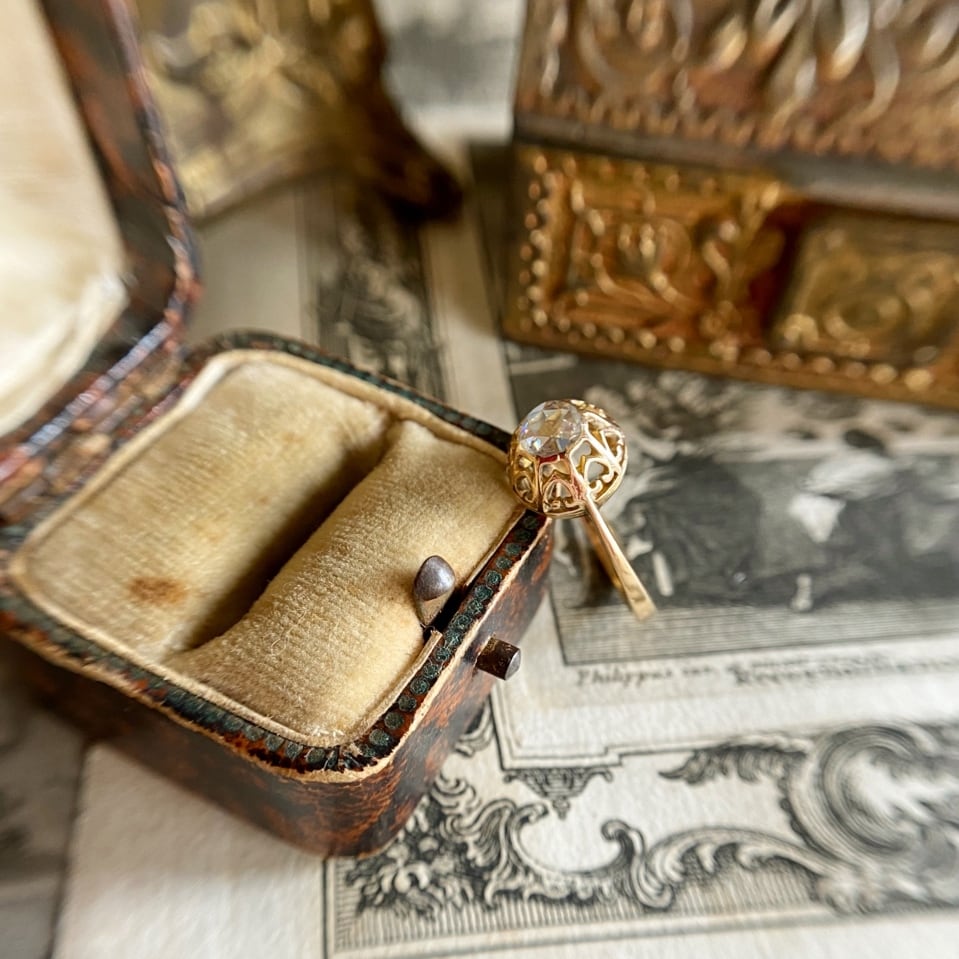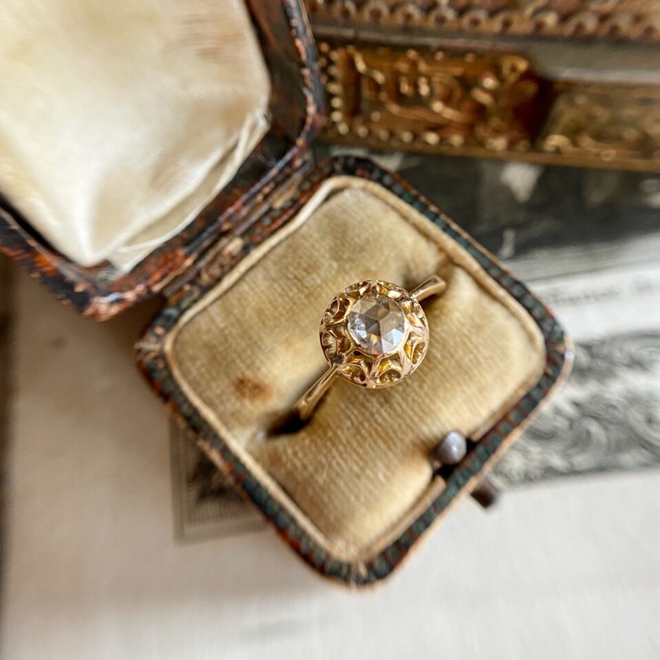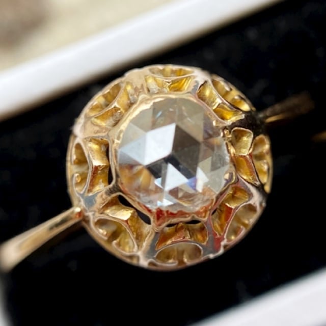 シンプルな一つ石で、扱いやすい大きさのローズカットダイヤモンドのリングはアンティーク好きなら一つは