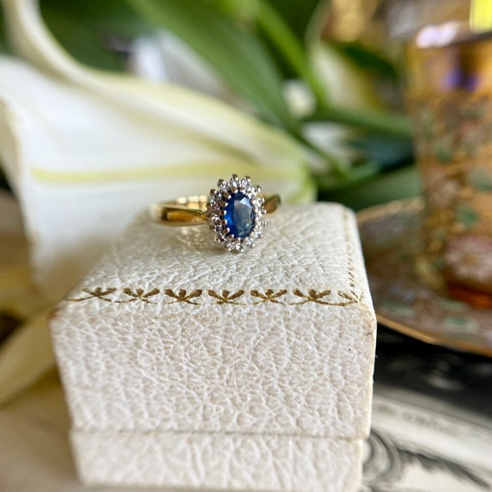 サファイア&ダイヤモンドクラスターヴィンテージリング