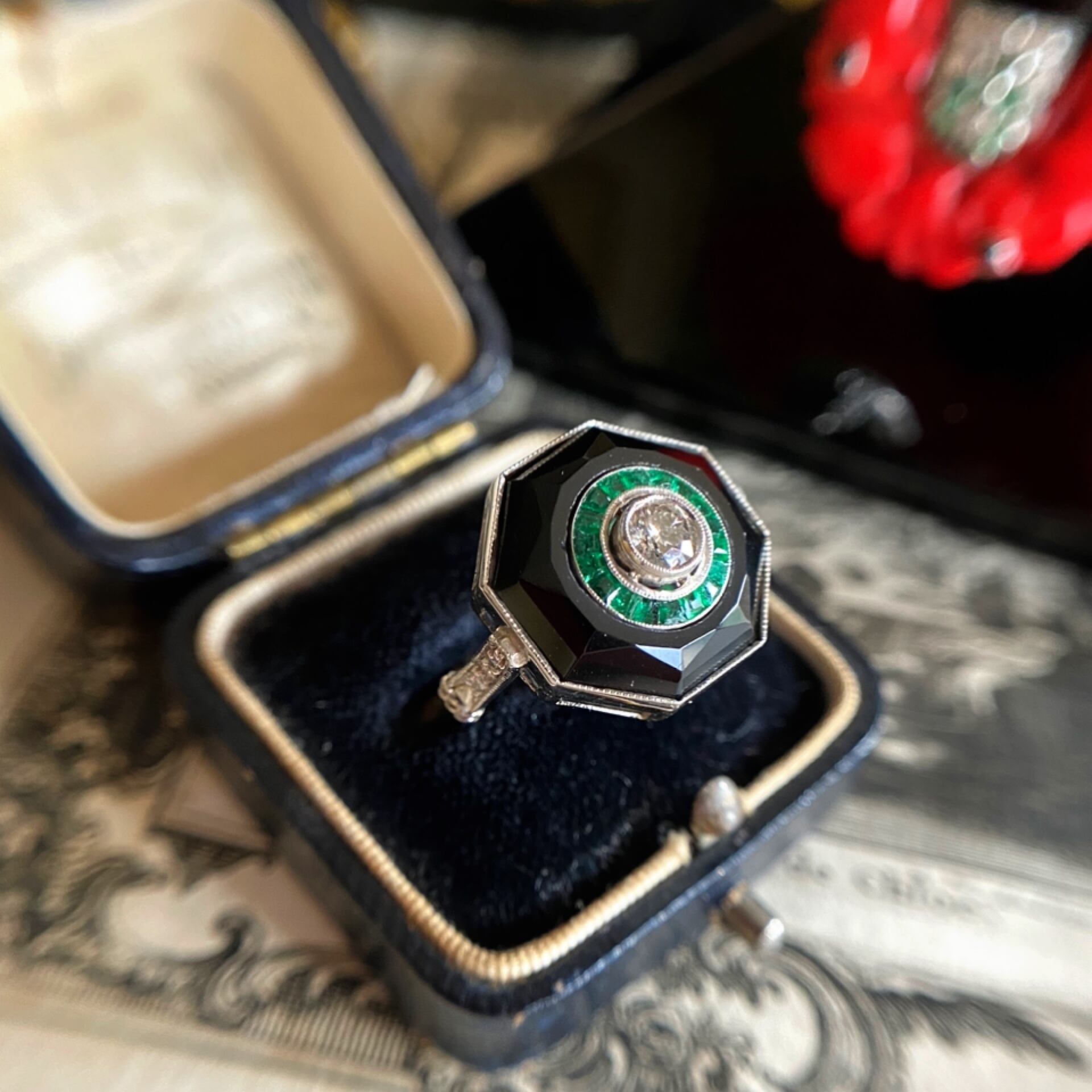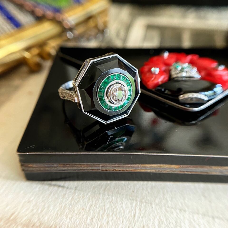 オニキス×ダイヤモンド×エメラルドアールデコリング