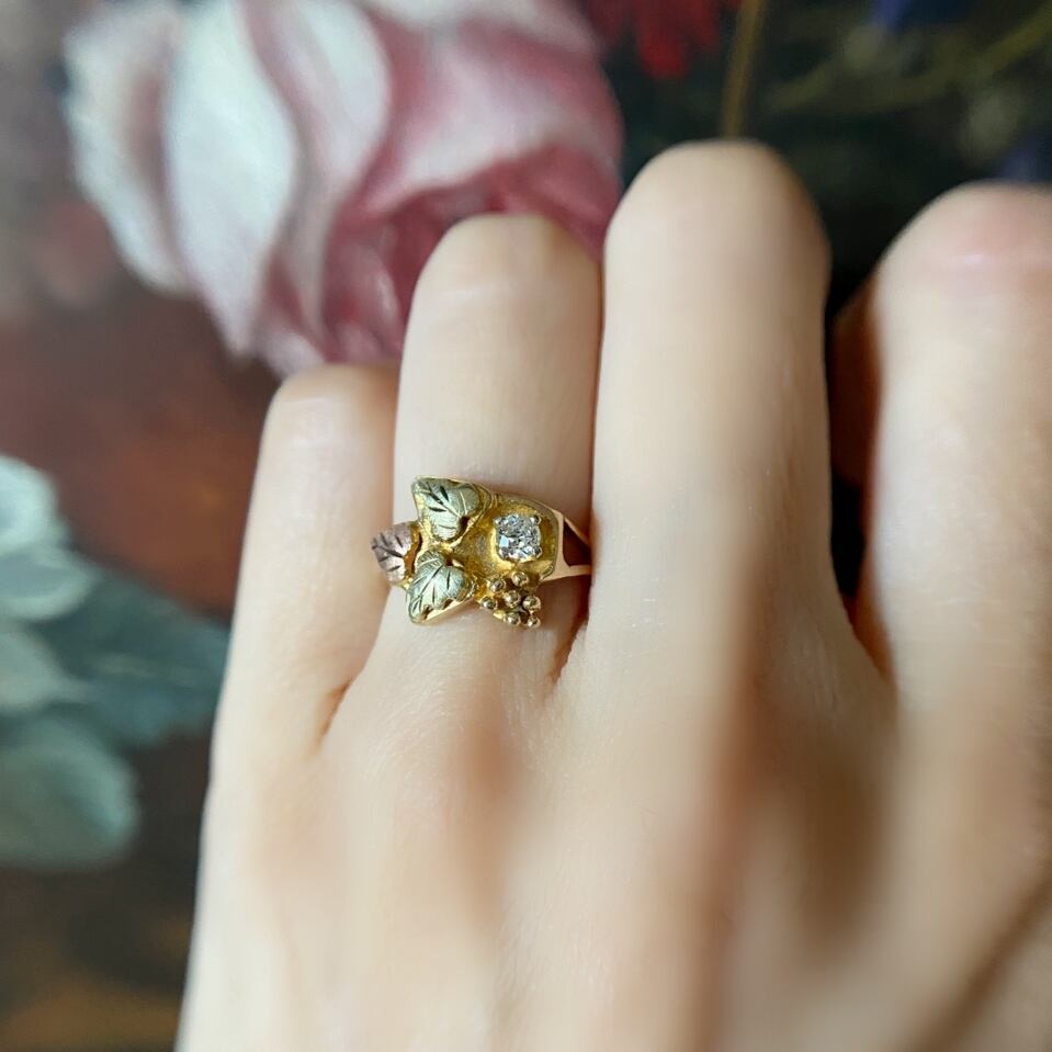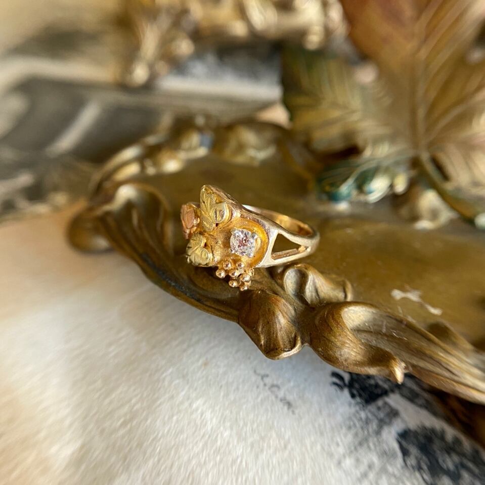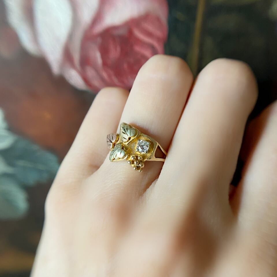トリコロールゴールド&オールドヨーロピアンカットダイヤモンドグレープリング