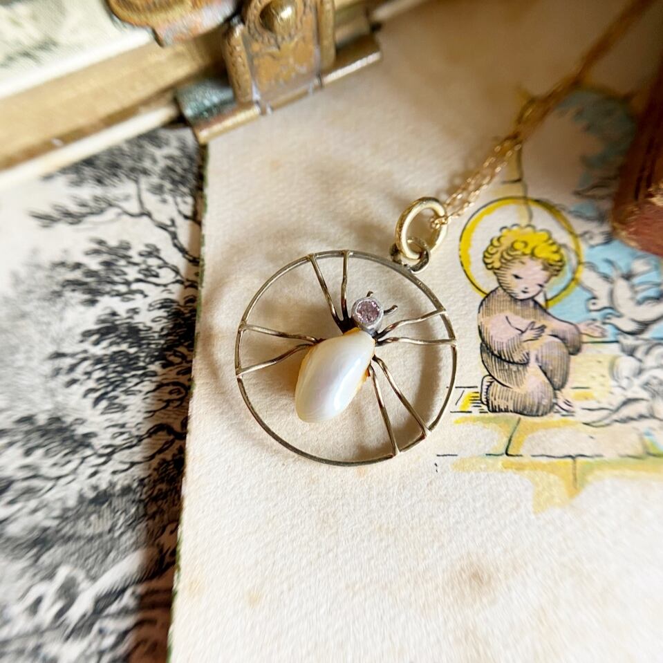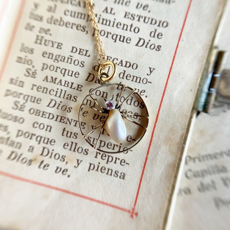 バロックパール&ピンクダイヤモンドスパイダーペンダント