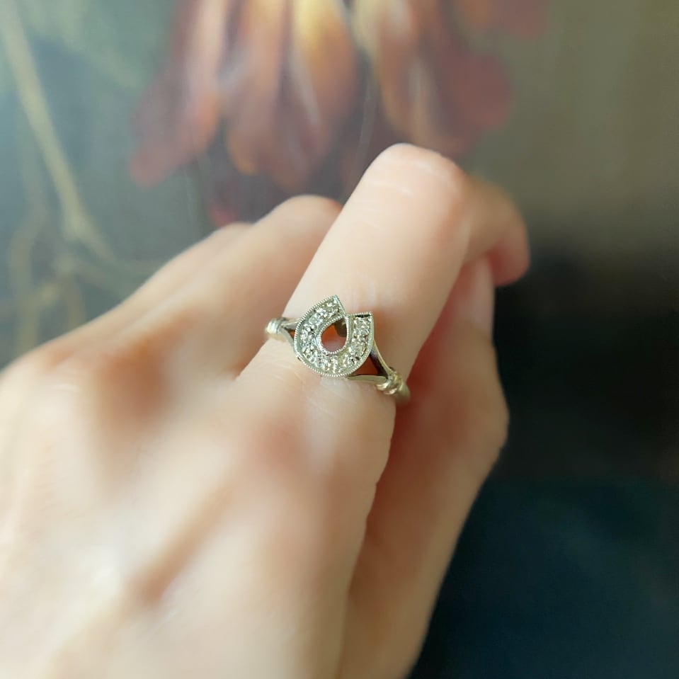 シンプルなホースシューに、シングルカットダイヤモンドを7石敷き詰め、なんだかさらに幸せを呼び込めそうですね!