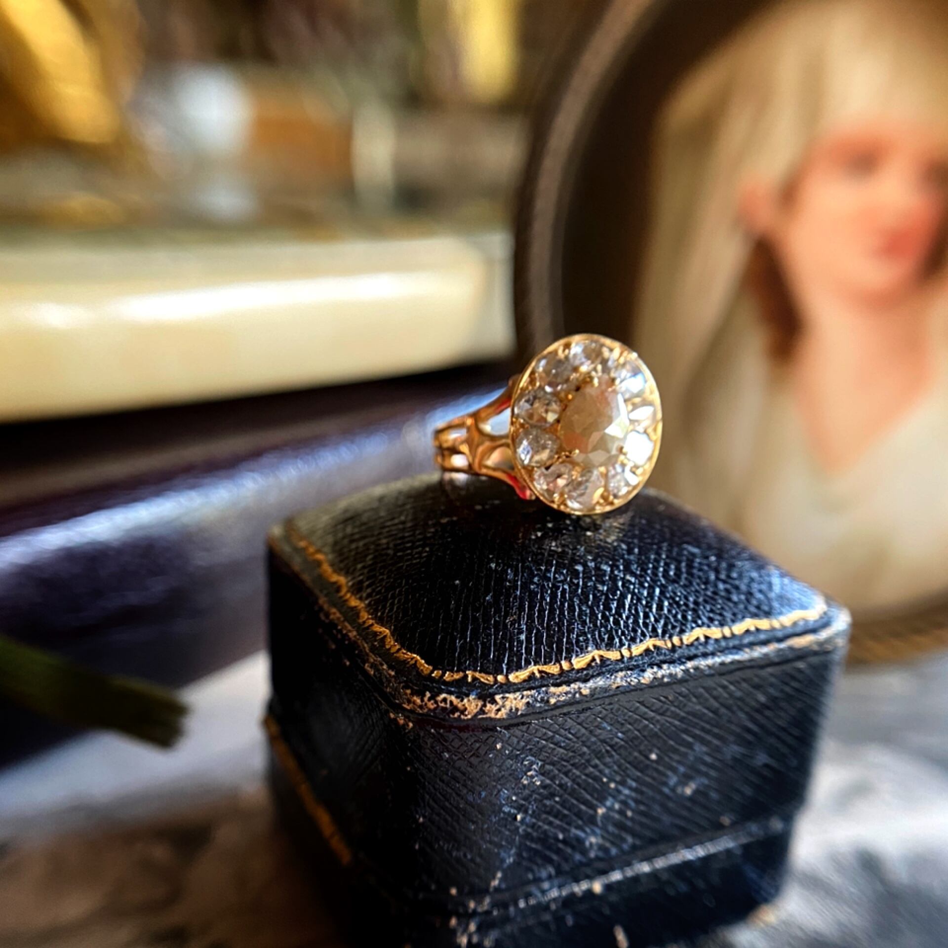そのような時代の名残さえも感じるこちらのリングは鉱石としてのダイヤモンドのユニークな美しさを感じさせてくれます。