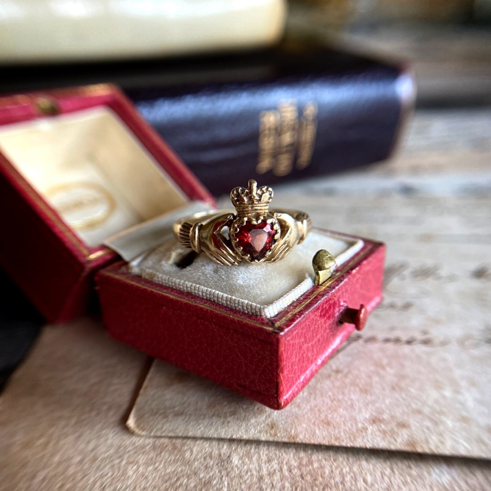 ガーネットはお花の花弁のように波打つ爪に包み込むようにセットされ、その留め方は現行品の物では見れないヴィンテージらしい特徴があります。