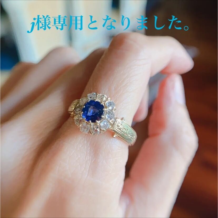 ナチュラルサファイア&オールドマインカットダイヤモンドクラスターリング(鑑定書付き)