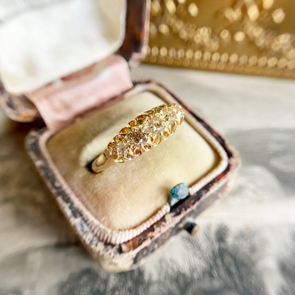 今では表現出来ないアンティークならではのカッティングは身に着ける人だけが秘かにニンマリとしてしまう、オーナーである喜びを感じる事が出来る王道のダイヤモンドファイブストーンリングです。