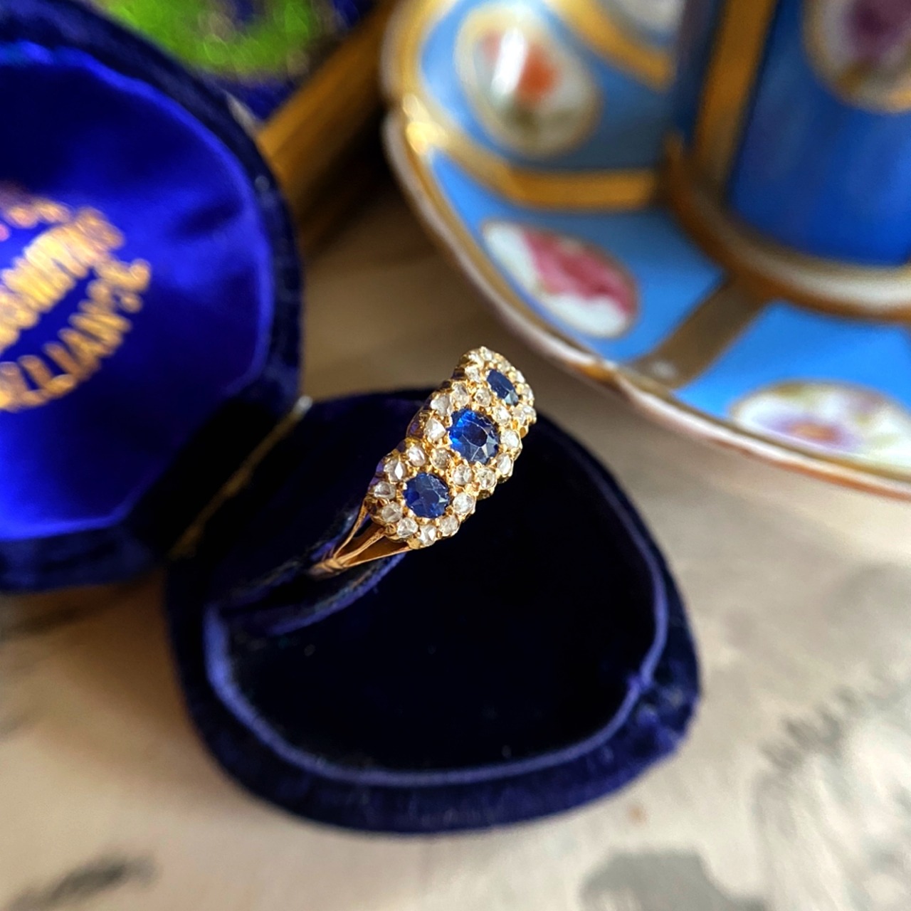 正に正統派なロイヤルブルー色のサファイアはカケなどもなく美しい状態で残っております。