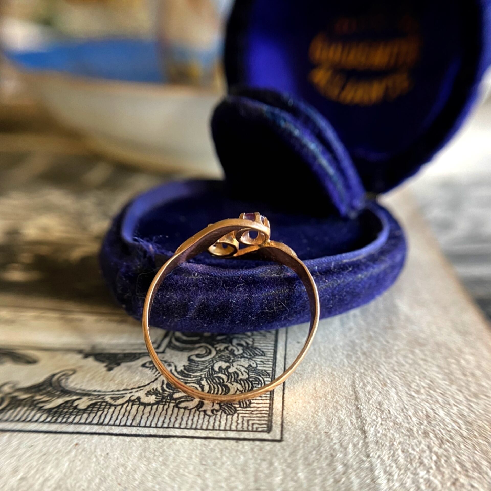 「トワ・エ・モア」つまり「貴方と私」という2つ並んだ石を恋人同士になぞらえ石が交差したデザインを示す20世紀初頭に流行したフランス製リング。