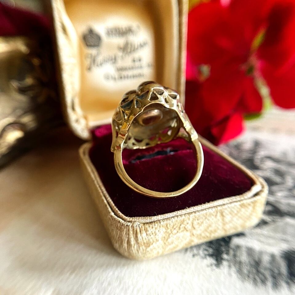 台座はクローズドセッティング、横のドレープのようなゴールドの台座の優美な雰囲気もとても素敵です。