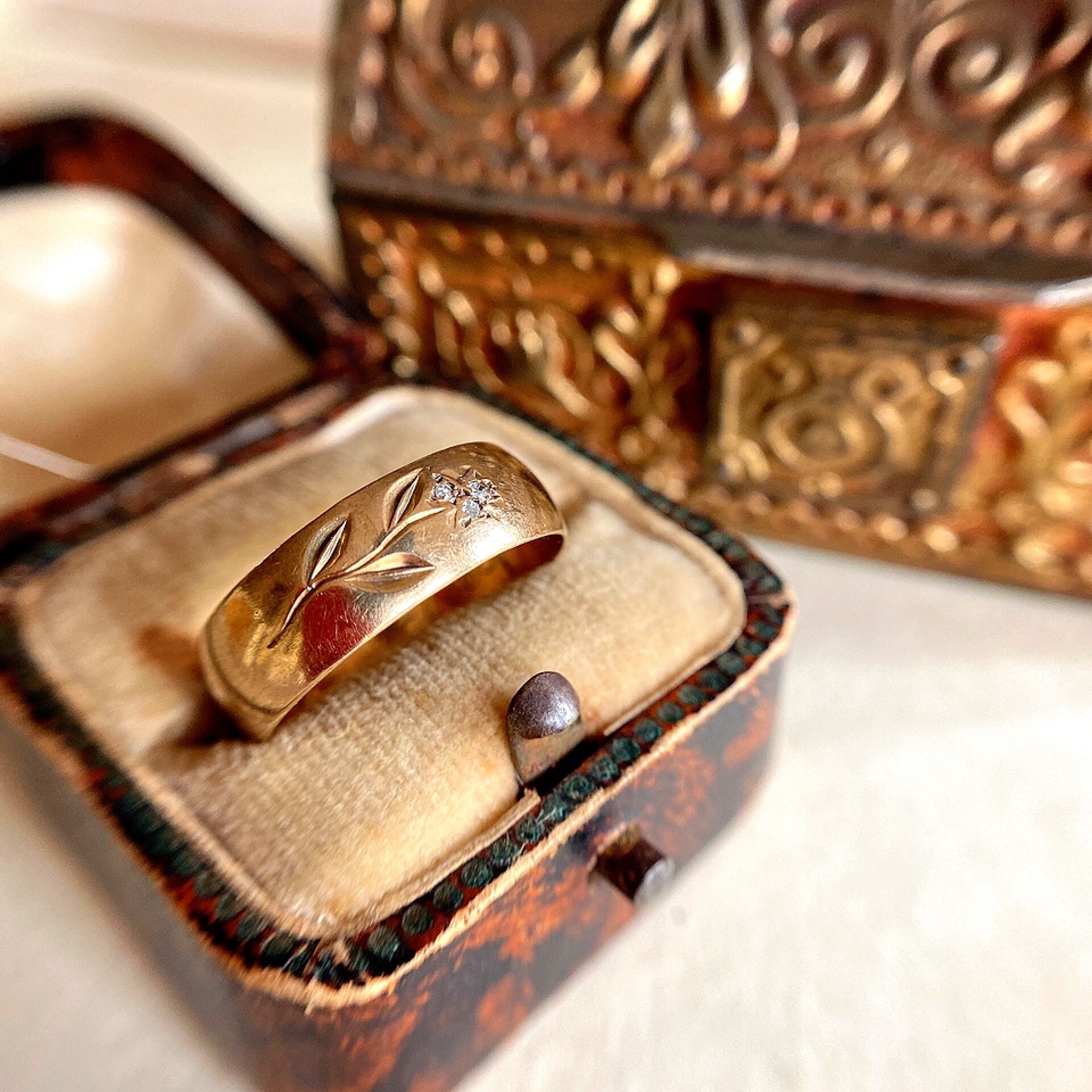 花弁にはシングルカットのダイヤモンドが3粒、夜空に輝く星のように落ち着いた小さな輝きを放っています。一見マニッシュなリングながら、このようなロマンティックな女性らしさが見え隠れしているのが素敵ですね。
