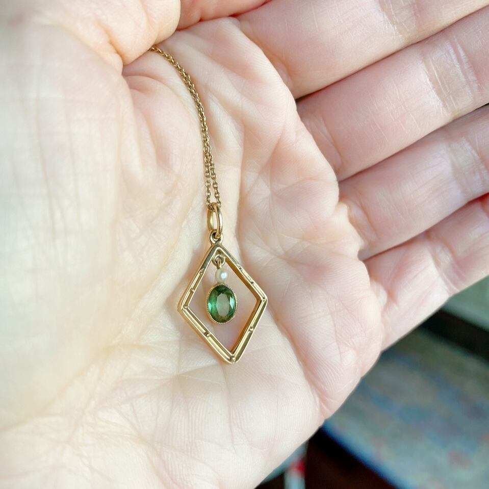 ペリドット&シードパールペンダント(オーストリア刻印)