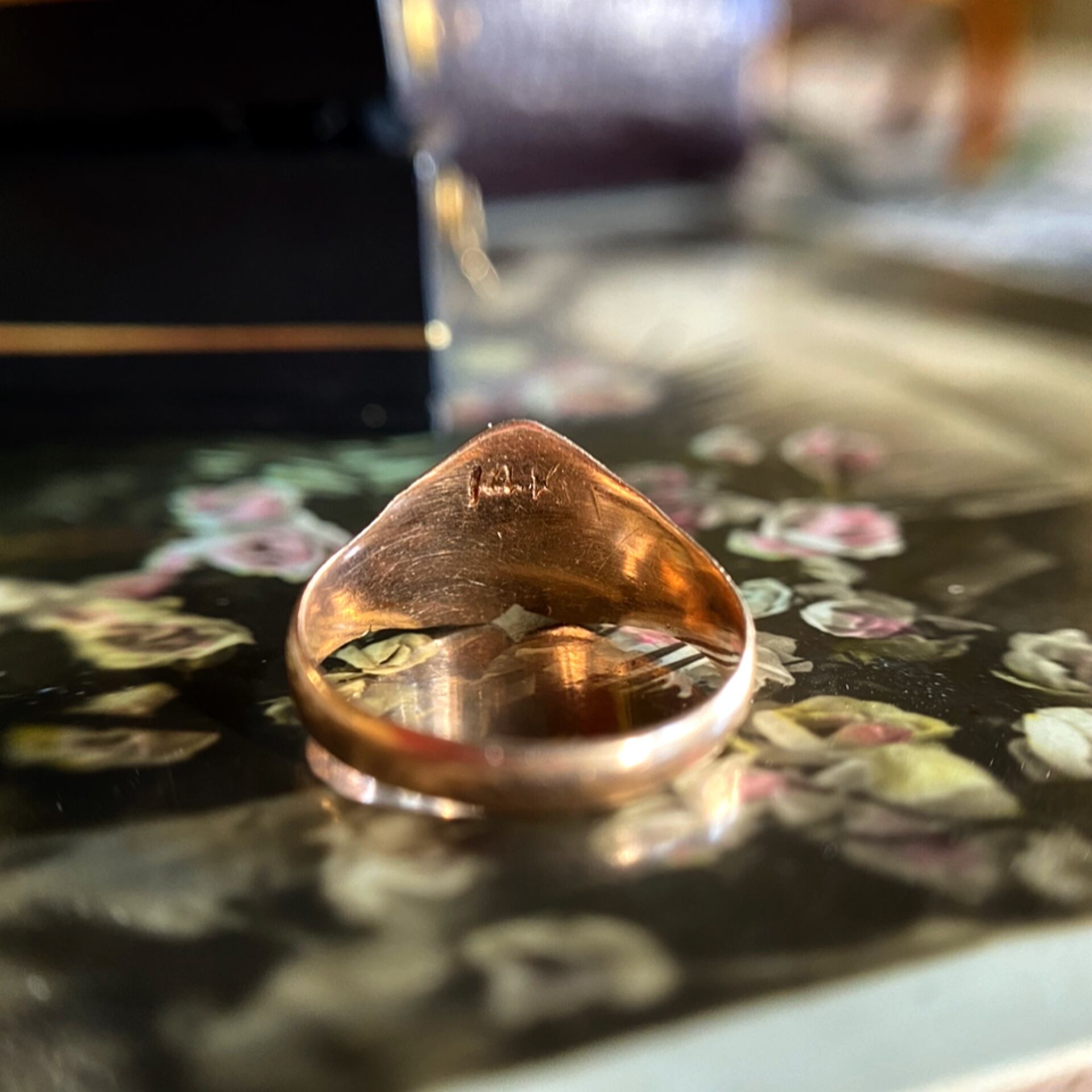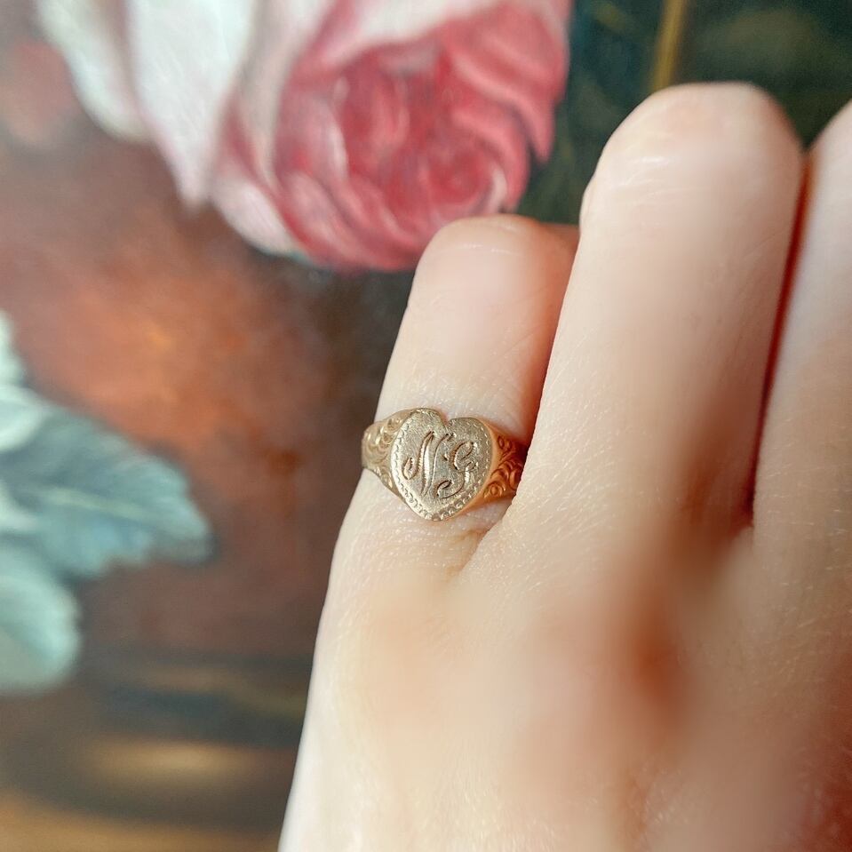 フェイスにはNGのイニシャルが彫金され、ハートに沿って彫られたガーランドの丸みのある縁取りもキュート!