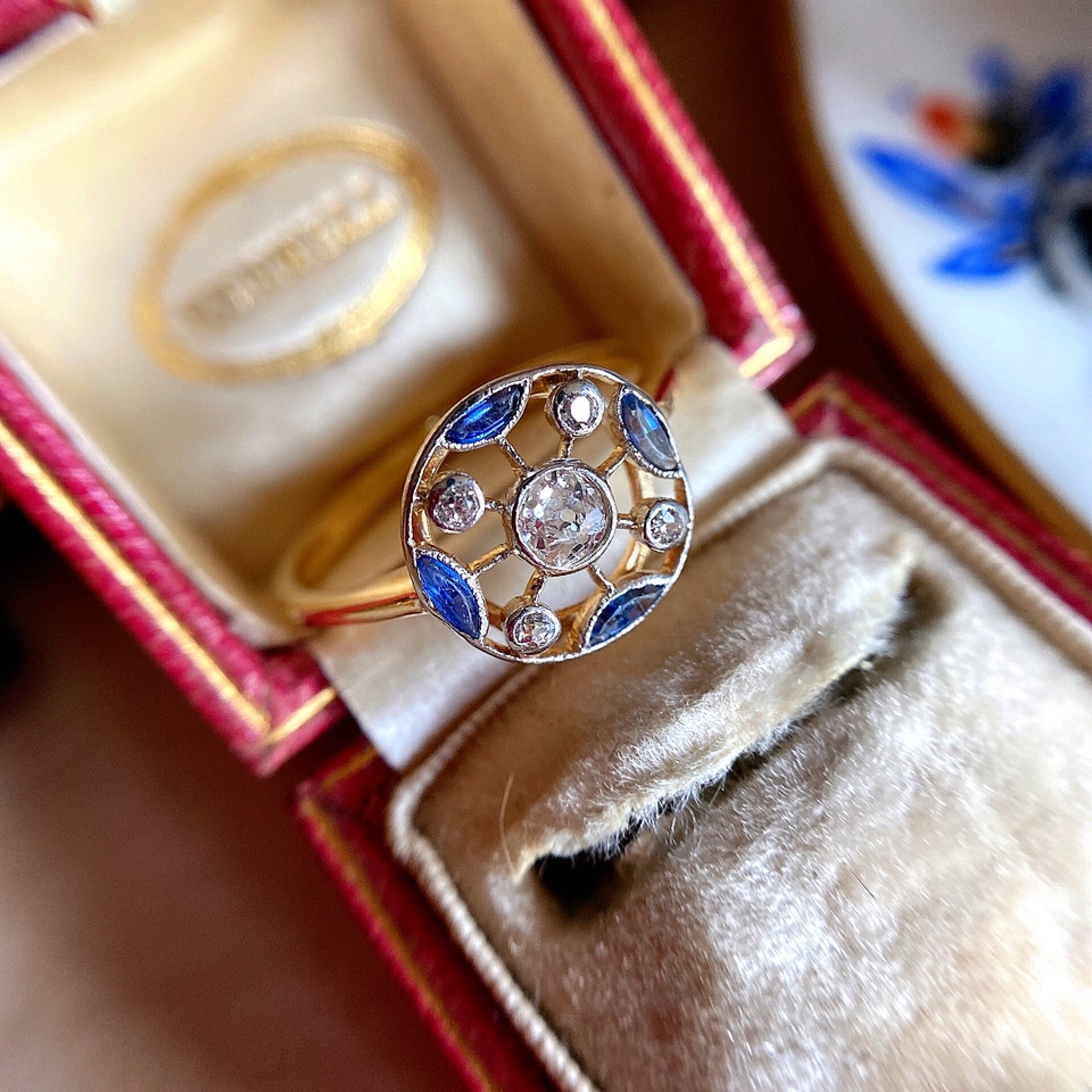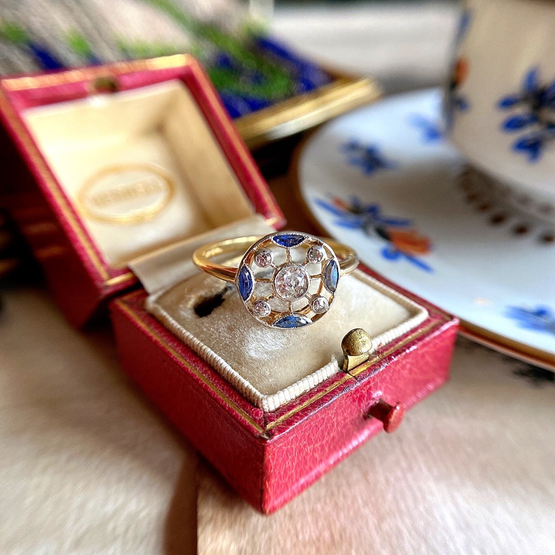 ※ ダイヤモンドもサファイアもカケはございませんし、肉眼でわかるような目立つ傷や内包物もございませんが、100年程前の古いお品物ですので、現行品の様な完璧な物をお求めになりたい方はお控え頂きたく存じます。