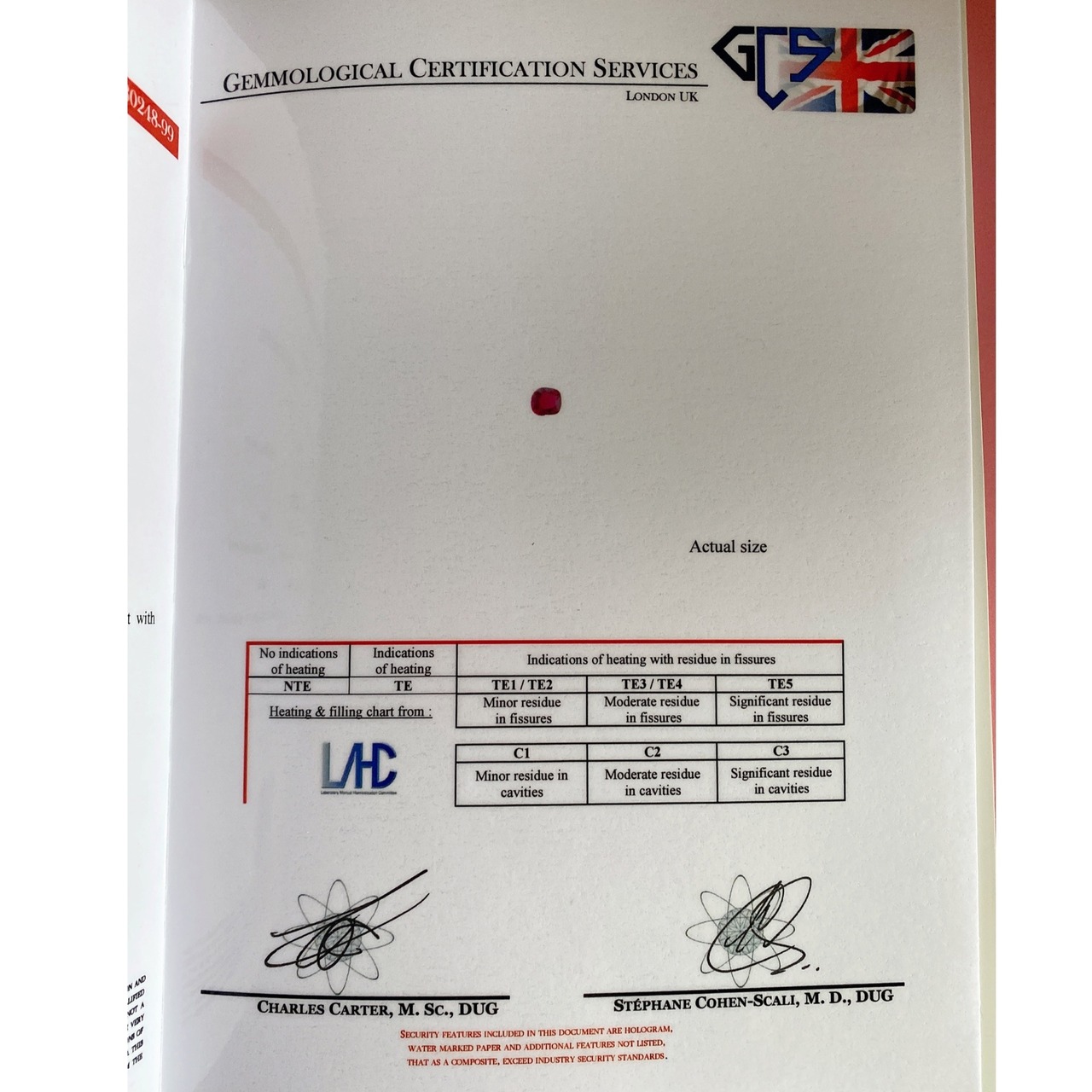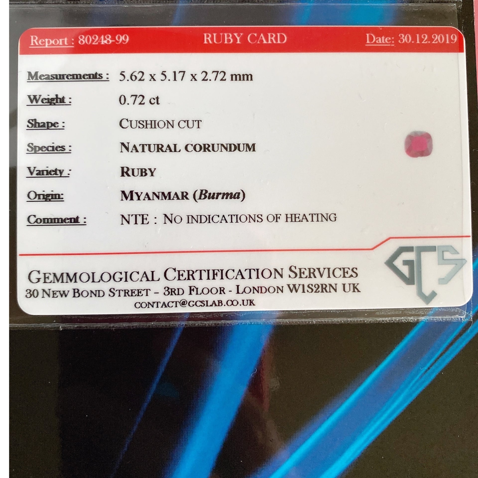 非加熱ビルマルビー&オールドマインカットダイヤモンドリング(英国鑑定書付き)