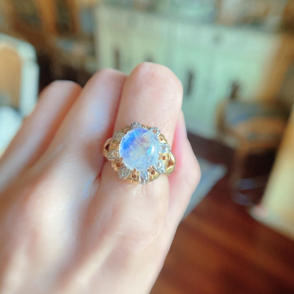 まるで水面に映る月のような静けささえも感じるブルームーンストーンリング。